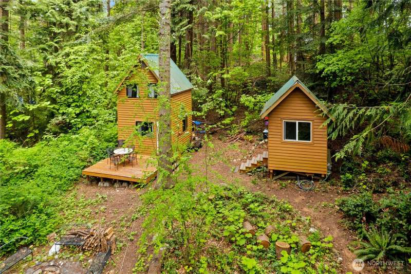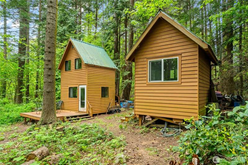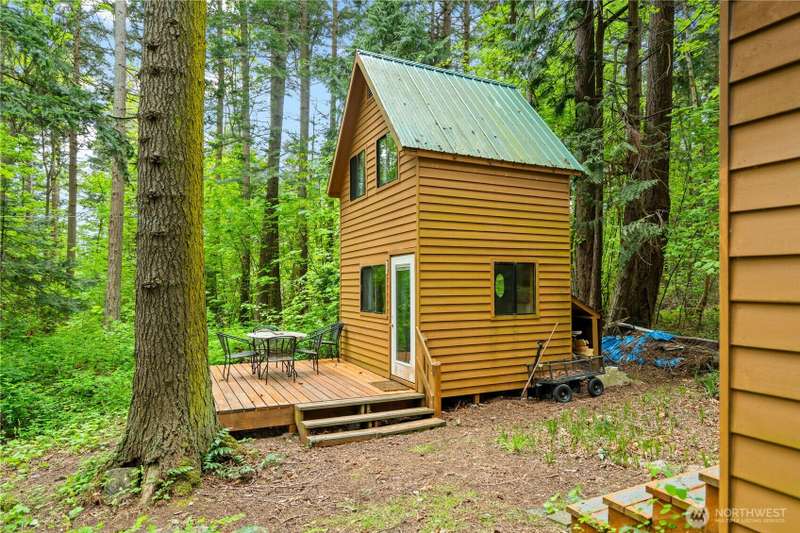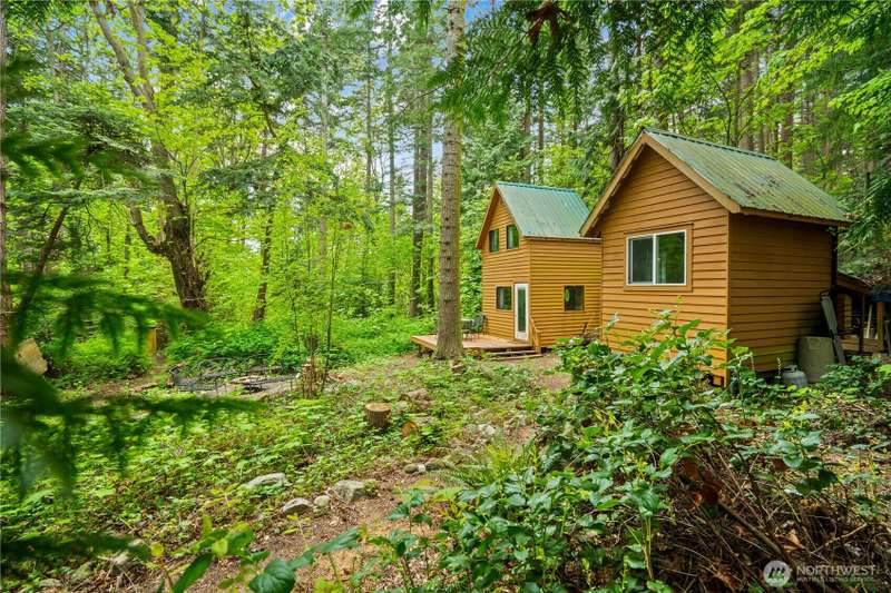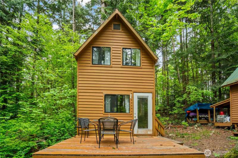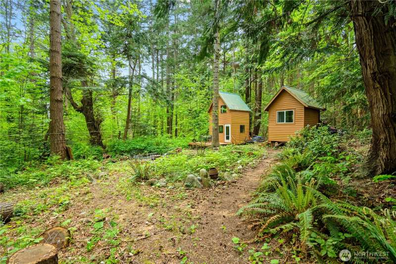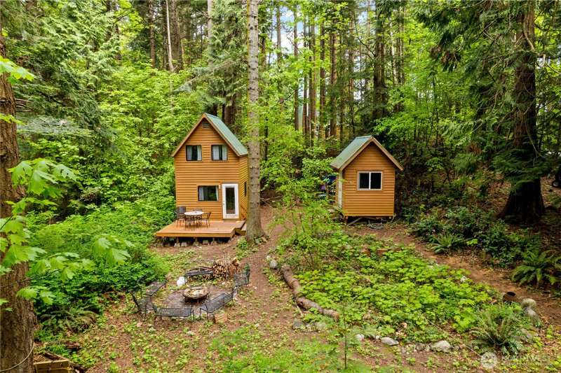 Dreaming of a tiny home getaway? These charming tiny cabins offer a cozy living area, loft bedroom, full kitchen, and bathroom with shower—everything you need to embrace a simpler, nature-connected lifestyle. Nestled on an interior Eliza Island lot just shy of one acre, you're surrounded by peaceful trees with beach adventures just moments away. With a 3-bedroom septic system already installed, there's potential to build an additional cabin up to 1,450 sq ft—create your own island compound! Whether you're seeking a serene escape, future retreat space, or off-grid living with expansion possibilities, this is a rare opportunity to be close to nature. Just 20 minutes from Bellingham. Don't have a boat? Take the water-taxi! *No rentals allowed.