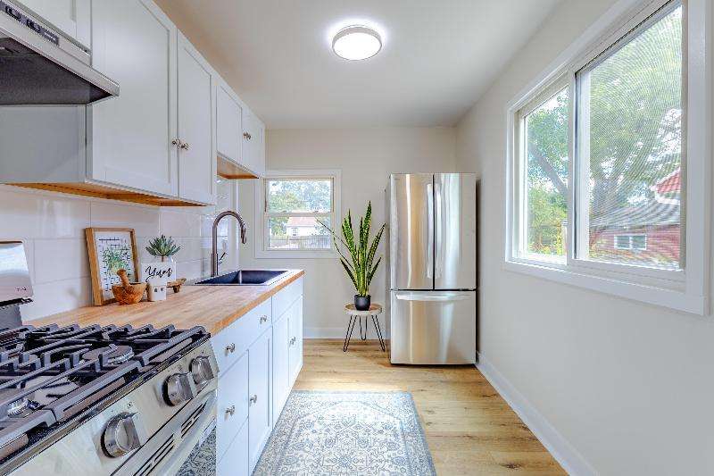 Welcome to this completely remodeled ranch that proves good things come in smaller packages. Inside you'll find a brand-new kitchen with butcher-block counters, stainless appliances, and sleek white cabinetry. The updated bath, new flooring, recessed lighting, and modern finishes carry that fresh vibe throughout.With everything including laundry all on one level, this home is easy living at its best--no stairs, no basement, no fuss. Bright windows and smart design make the space feel open and inviting. Outside, the navy exterior with wood shutters gives this home curb appeal that pops. The huge backyard is fully fenced! Just minutes to Mount Mary University, Currie Park Golf Course, and the Menomonee River Parkway trails. Shopping and dining nearby is super convenient!