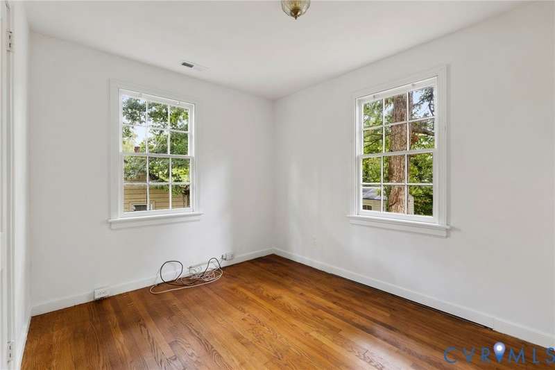 This well-maintained 2-bedroom, 1-bath home offers 864 sq. ft. of comfortable one-level living in a prime location. Featuring gleaming hardwood floors and fresh paint throughout, the spacious layout includes a large living room, dining room, and a bright kitchen equipped with an electric stove, refrigerator, and full-size washer and dryer. Both bedrooms are generously sized with overhead lighting and ample closet space, sharing a full hall bath. Enjoy the outdoors year-round on the huge screened-in porch, overlooking the fenced rear yard with a detached storage shed. Additional features include a pull-down attic for extra storage, a private driveway for off-street parking, and brand new heat pump and ductwork for peace of mind. Set in a convenient neighborhood near I-64, the Broad Street corridor, and The Village Shopping Center, you'll be just minutes from dining, shopping, and everyday necessities. All within the highly regarded Henrico County school district! Don't miss this affordable opportunity to own in a sought-after location with tons of natural light, low-maintenance vinyl siding, and move-in ready comfort.