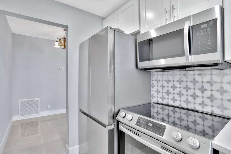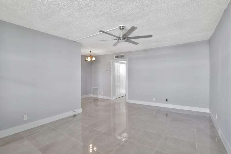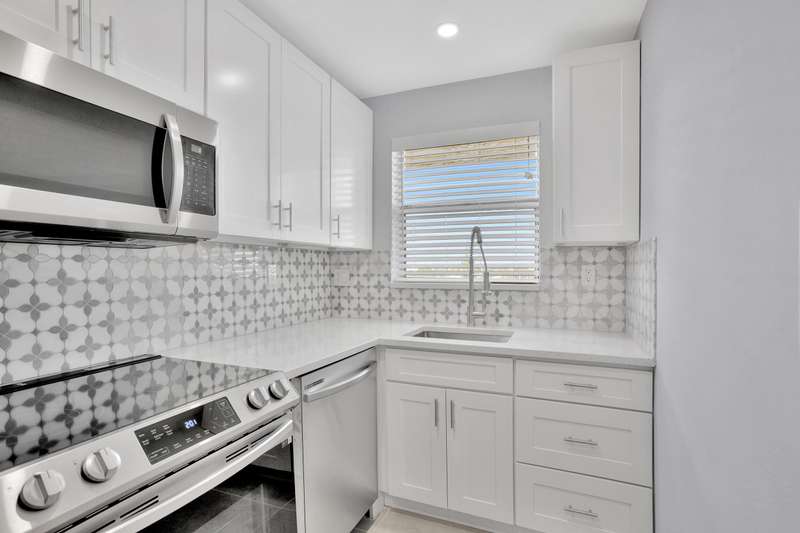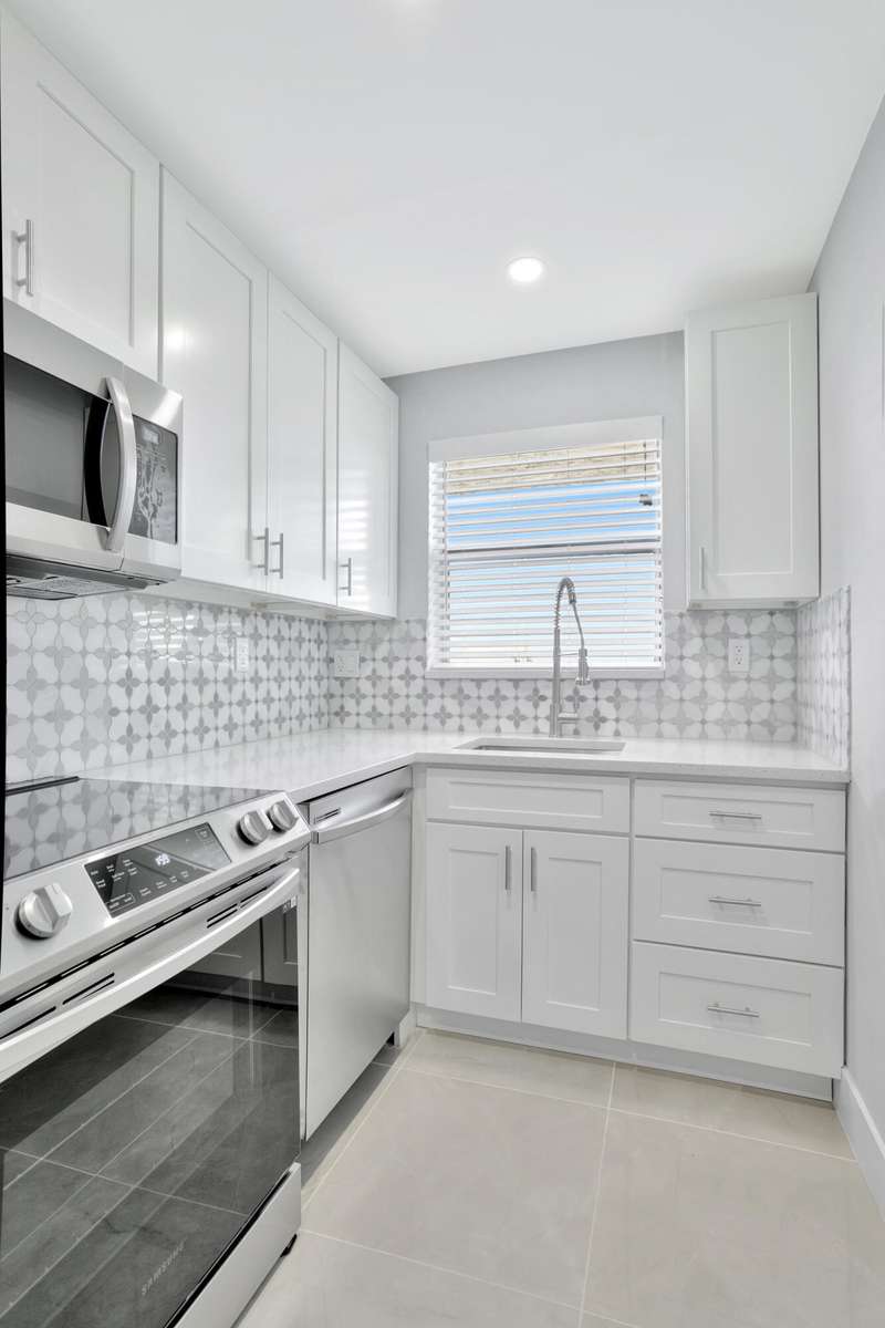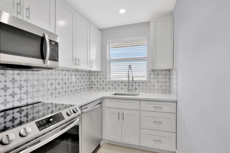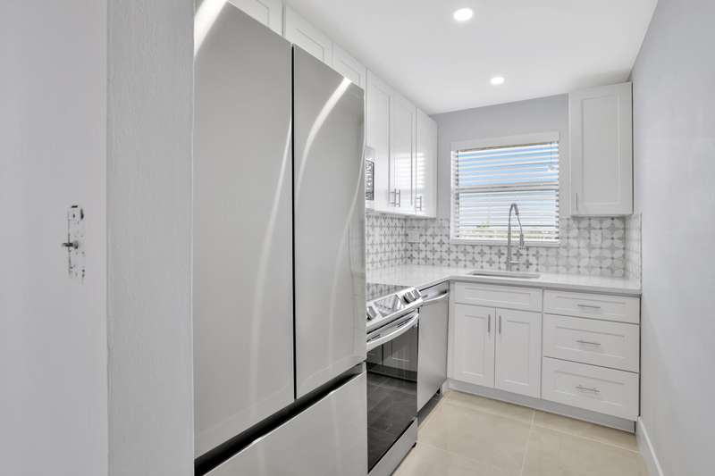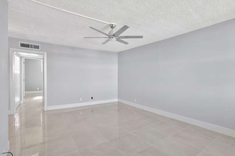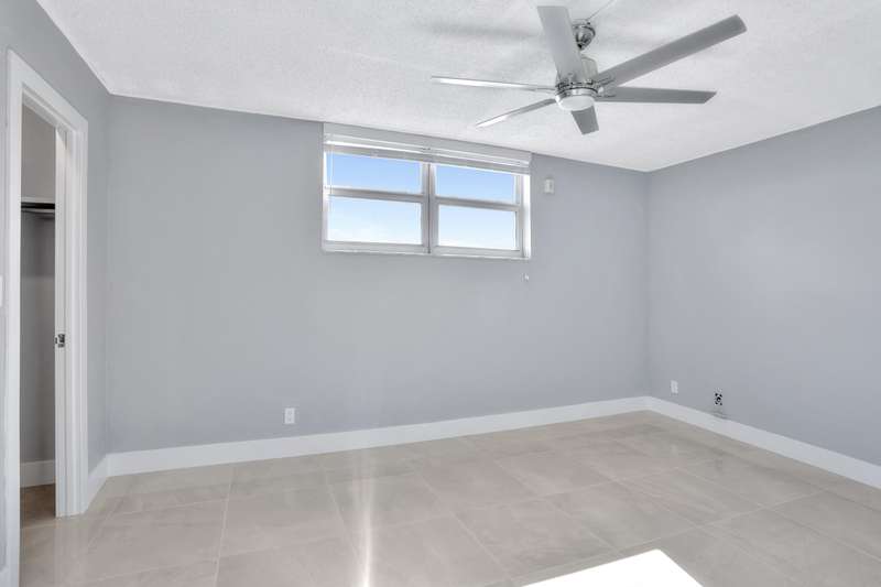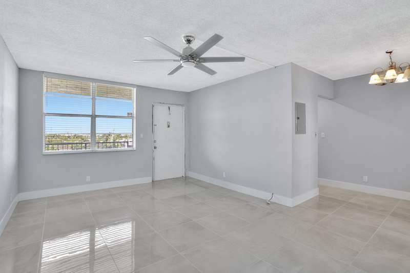 This stunning one-bedroom, one-bath condo in East Pompano is a true gem, located on the fifth floor, offering breathtaking views and abundant natural light. Recently fully remodeled, the interior boasts contemporary finishes and modern amenities. The spacious living area features an open concept design, seamlessly connecting the living room and a stylish kitchen equipped with stainless steel appliances, sleek countertops, and ample cabinetry. The bedroom offers a serene retreat with generous closet space and large windows that enhance the airy feel. The bathroom is beautifully updated with a luxurious shower, elegant fixtures, and chic tile work. Residents can enjoy access to building amenities, including a pool, and convenient laundry facilities. Located just minutes from the beach.