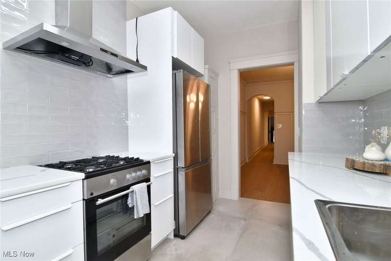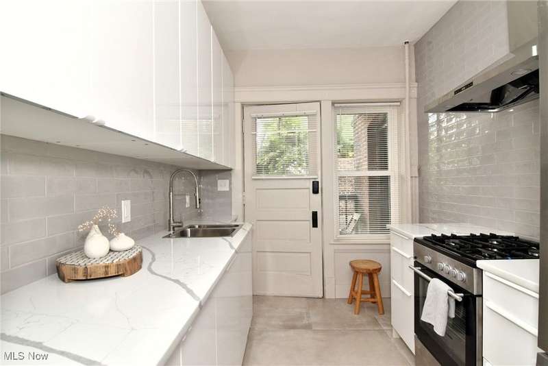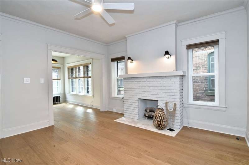Stylish, completely renovated 2 bedroom in Cedar Fairmount, just up the hill from University Circle, Case, Cleveland Clinic and University Hospitals. Beautifully renovated building on treelined street in just down the block from your choice of restaurants bookstore, shops and newly opened grocery. Gorgeous wide plank hardwood flooring throughout living areas and bedrooms. Lighting selections and brand new windows modernized this 1920's building. Bright kitchen with quartz counters and tiled backsplash, built-in dishwasher, fridge, range and vent hood included. Classy living room with fireplace & mantle with scones. Sunroom overlooking front garden. Dining room with original leaded glass built-ins. Two bedrooms and a fully renovated bath with walk in shower and modern fixtures. Rent maintenance, and one garage space included. Tenant pays $200 a month for heat/water & sewer; electric, gas for range and internet. Laundry available in common area. No smoking, No pets. Applicants must complete online screening with full background and credit check. Tenants need at least 2.5 times monthly rent of income.