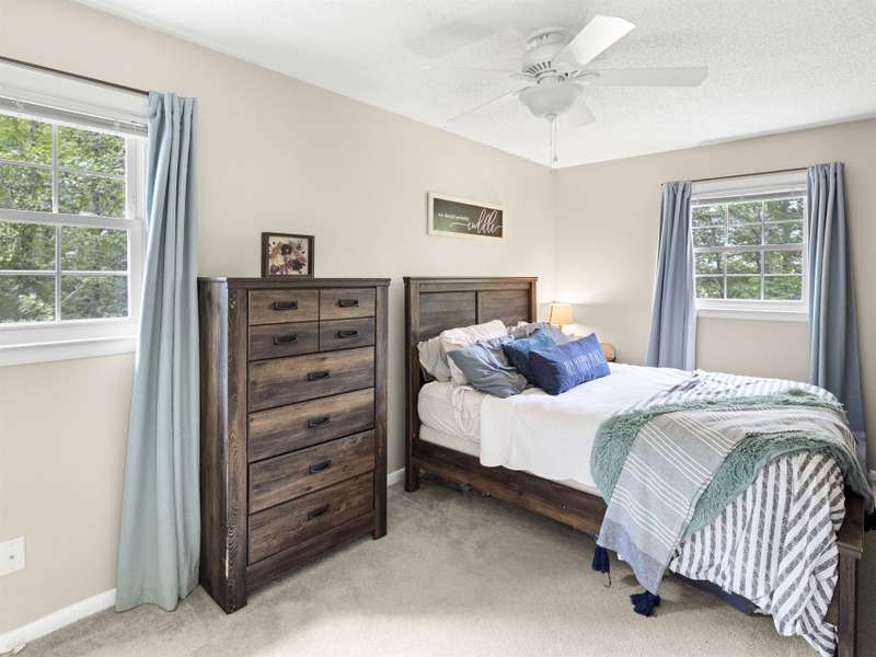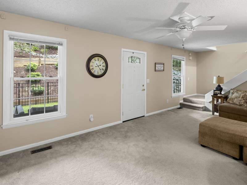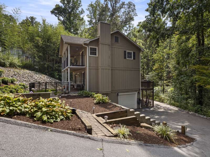 Tucked away at the end of Candor Drive, this inviting two-story home with basement offers the privacy of a secluded setting while still being convenient to Fletcher, Hendersonville, and Asheville. The location at the end of the road means minimal thru-traffic and reduced road noise, creating a peaceful environment surrounded by mature trees. The front yard was fenced and turfed in 2022, providing an attractive, low-maintenance outdoor space for pets, play, or gatherings.Step inside to a thoughtful floor plan with living spaces on the main level and all three bedrooms located upstairs for privacy. The kitchen is efficient and easy to maneuver, opening into a dining and living area anchored by an unvented gas fireplace?perfect for cozy evenings. Upstairs, the bathroom was updated in 2025 with a new shower and tile, serving all three bedrooms with a fresh, modern feel. Two of the bedrooms open directly onto a covered balcony at the front of the home, creating a peaceful spot to enjoy morning coffee or unwind in the evening while taking in the quiet surroundings.Entertainment is effortless here with indoor and outdoor gathering spaces. Host friends around the fire pit, relax on the back deck, or enjoy the shaded upper balcony. The backyard is wooded and private, offering a natural buffer and sense of retreat. Additional updates include new interior paint throughout (2021), hot water heater (2018), refrigerator (2023), microwave (2024), and semiannual HVAC maintenance for peace of mind. Sellers also hold a premium pest protection contract through 2026.The basement includes a one-car garage with a garage door, plus space for laundry, storage, and workshop potential. Road maintenance is covered by the HOA, with dues also funding neighborhood improvements.With its quiet cul-de-sac location, upgraded outdoor spaces, comfortable interior flow, and combination of seclusion and convenience, 25 Candor Drive offers a rare opportunity to enjoy mountain living. This home is ready for its next chapter?come see why it's such a special find in Fletcher.
