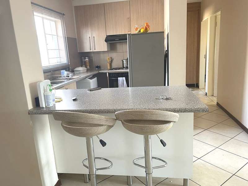 Neat and Modern property available to make a home!! It’s on the 1st floor, in a complex within an access-controlled estate. It comes with modern finishes. The 2 bedrooms are quite spacious, main bedroom has en-suite, there is also another bathroom. The kitchen has space for 2 appliances, the open plan living area leads on to a covered balcony. The property comes with 1 covered carport and a lockup garage, there is also plenty of visitors parking. There is communal park/play area as well as braai areas for resident’s use. The Estate offers quick and easy access to R55, N14, N1 and with shopping centres, malls, and other amenities in the vicinity. Contact me today to arrange a viewing!!