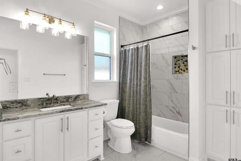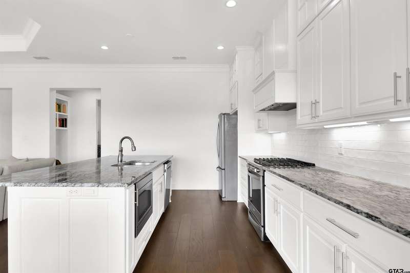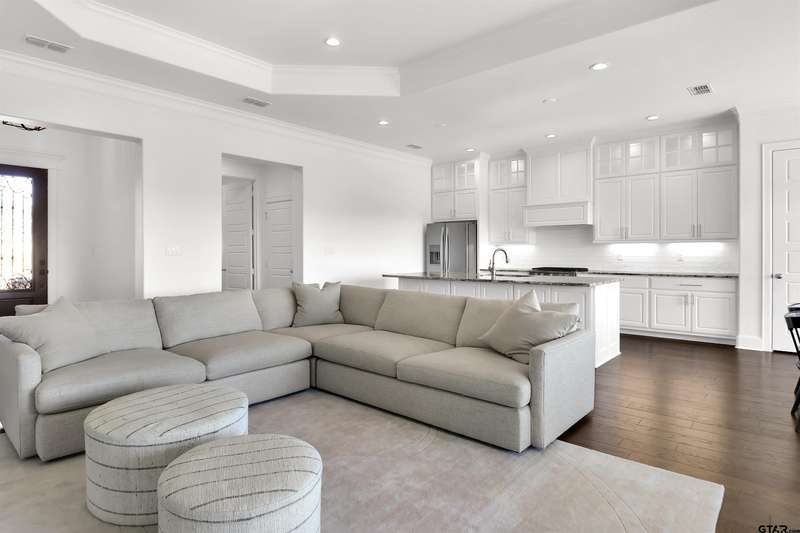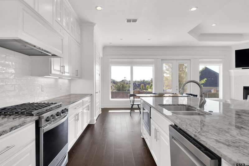 Stunning Home in. Oak Creek. Move in ready and affordable. HOA includes Pool, tennis courts, soccer field, gym, and bar/cafe area, just $490 yearly. Located right off Old Jacksonville, close to Fresh, schools, dining and banking. 3 bedrooms, split arrangement. Open floor plan, light and bright, with a wall of windows showcasing the Family Room. Gas logs fireplace, wood flooring, updated paint and updated carpet in the bedrooms. Kitchen has SS appliances, 5 burner gas range, white cabinetry with lighting, pantry, and a large island with seating. Breakfast Room overlooks the covered back patio with ample room to roam in the backyard. Wood Fencing, sprinkler system, and located in a cul de sac - very private. Front entry garage, and just a beautiful, clean and bright, color scheme. Come see this Happy Home today!