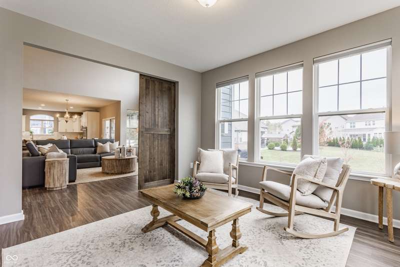 Welcome home to 10440 Vermillion Drive! Located in the sought-after Woods at Vermillion community- complete with a neighborhood pool, playground, and nearby award-winning schools. Step inside to an inviting open-concept layout featuring a stunning two-story great room filled with natural light and anchored by a cozy gas fireplace. The kitchen offers abundant cabinetry, stainless steel appliances including a double oven, and a large island- perfect for hosting friends and family for the holidays. The convenient built-in lockers just off the garage entrance were thoughtfully designed for everyday living and organization. A main-level bedroom with an attached full bath provides flexibility for guests, a home office, or multi-generational living. The sun room makes for the perfect spot to enjoy your morning cup of coffee or read your favorite book in the evening. Retreat in the primary suite featuring tray ceilings, dual vanities, a large tiled walk-in shower, and an expansive walk-in closet. Upstairs, you'll find three additional bedrooms, a jack-and-jill bath plus another full bath, and a conveniently located laundry room. The sizable finished basement boasts an oversized family room ideal for movie nights or entertaining, a private den, exercise room and an additional bedroom with a full bath. Enjoy peaceful evenings on the screened-in porch overlooking the serene backyard. You won't want to miss this one!