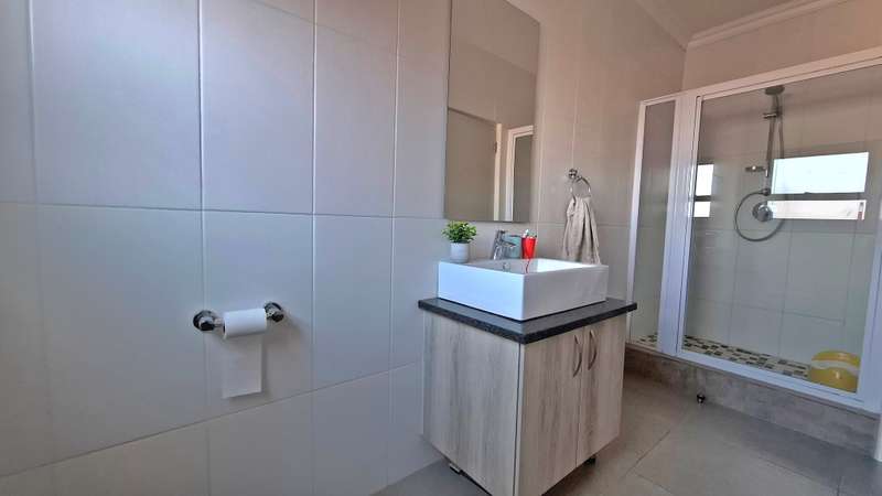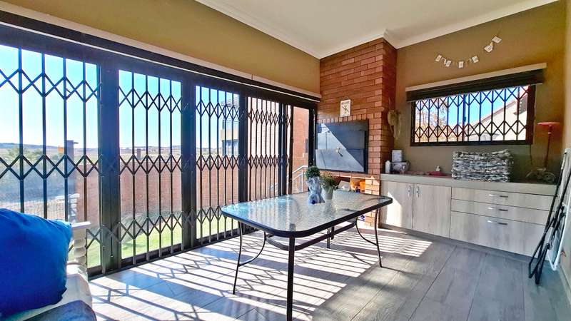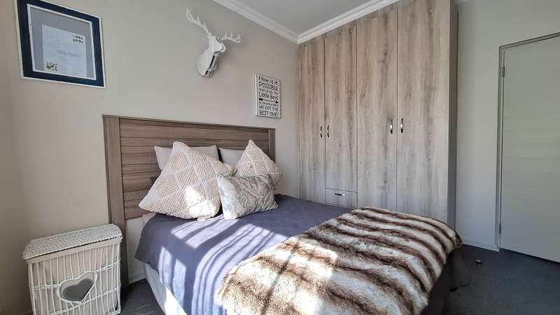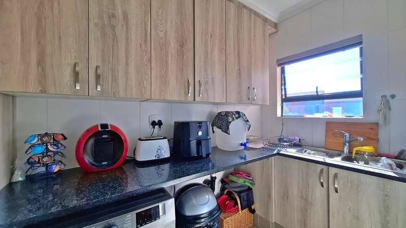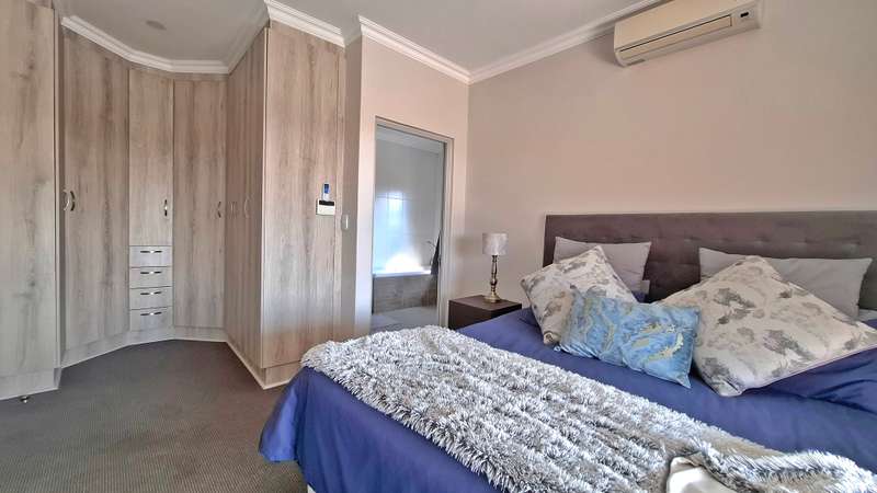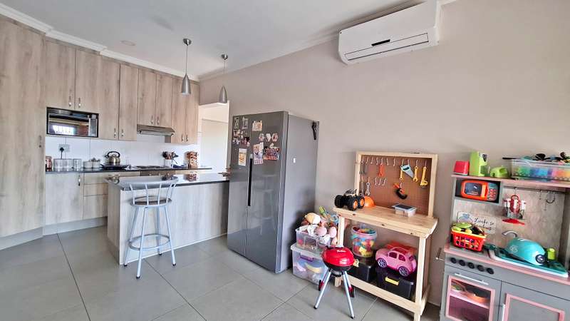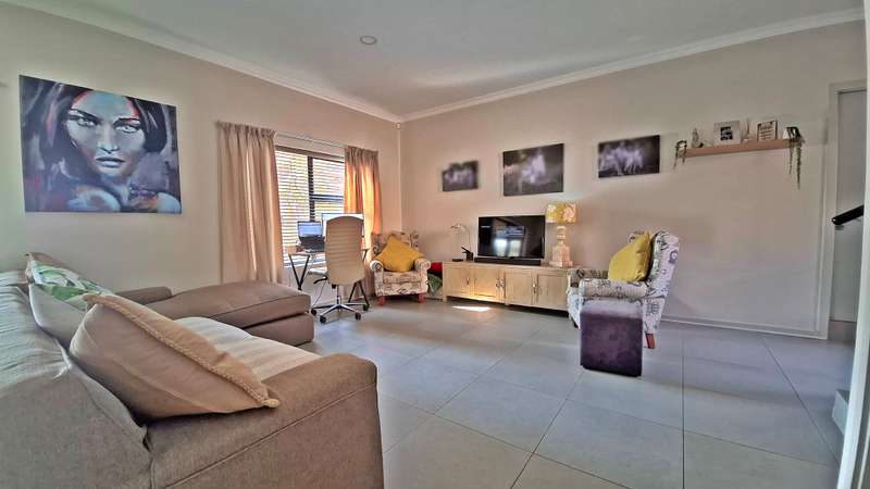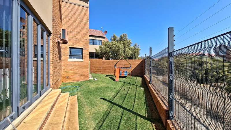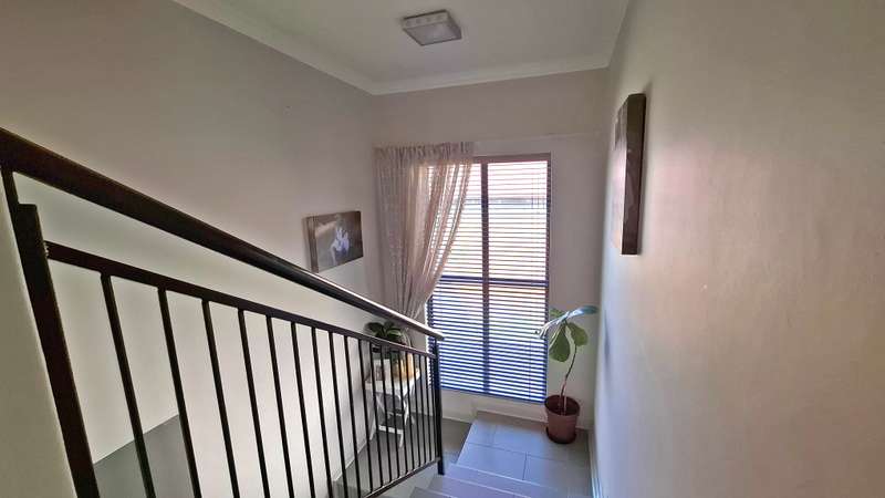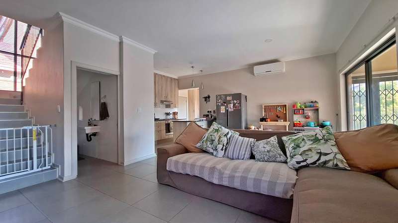 DUAL MANDATE This stylish and spacious three bedroom double storey townhouse offers the perfect blend of comfort, functionality, and contemporary design — ideally situated near a serene green belt for peace and privacy. Downstairs, enjoy open plan living and dining area fitted with an air conditioner, flowing seamlessly into a modern kitchen complete with granite countertops, a breakfast bar, and a separate scullery. The entertainment area features stacking doors that open to a private garden, along with a built-in braai — perfect for hosting guests year-round. A guest toilet adds convenience on the ground floor. Upstairs, the main bedroom includes an air conditioner, a full en suite bathroom, and a sliding door that leads to a private balcony. Two additional bedrooms share a second full bathroom, ideal for family or guests. Additional features include a double automated garage with built-in cupboards and direct access to the home. Extras like blinds throughout, an irrigation system, and Trellidoors provide added comfort, security, and ease of living. Pet friendly, pre-paid water and electricity. This move-in-ready townhouse is ideal for families, professionals, or anyone looking for a modern, low-maintenance home in a tranquil setting.