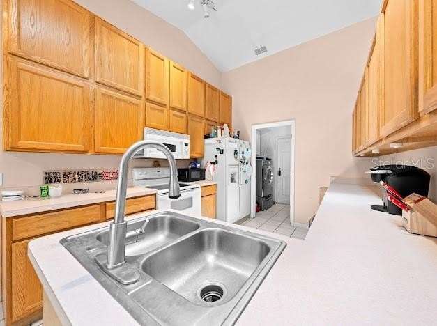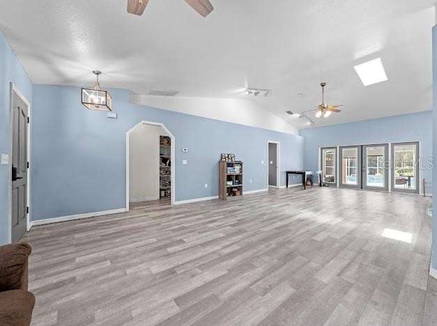 4-bedroom, 3-bathroom home located in the highly desirable Canoe Creek Woods community. Step inside and be greeted by soaring cathedral ceilings and two skylights that bathe the open-concept family room and kitchen in natural light. Custom French doors lead you to a serene covered lanai overlooking the private, screened-in pool—perfect for entertaining or unwinding in your own backyard oasis. The fully fenced backyard features tall hedges that provide added privacy around the pool area. HOA has approved a vinyl privacy fence, should you want to remove them for more space. The expansive master suite offers direct access to the lanai and pool and boasts two oversized walk-in closets and a spacious en-suite bath complete with a garden tub. A thoughtfully placed third bedroom with its own full bathroom also enjoys access to the lanai—ideal for guests or multigenerational living. Canoe Creek Woods offers a peaceful neighborhood setting with unbeatable convenience—just minutes from Florida’s Turnpike, public transportation, Central Florida attractions, and even the beaches of Brevard County. Don’t miss the opportunity to make this inviting home your own!