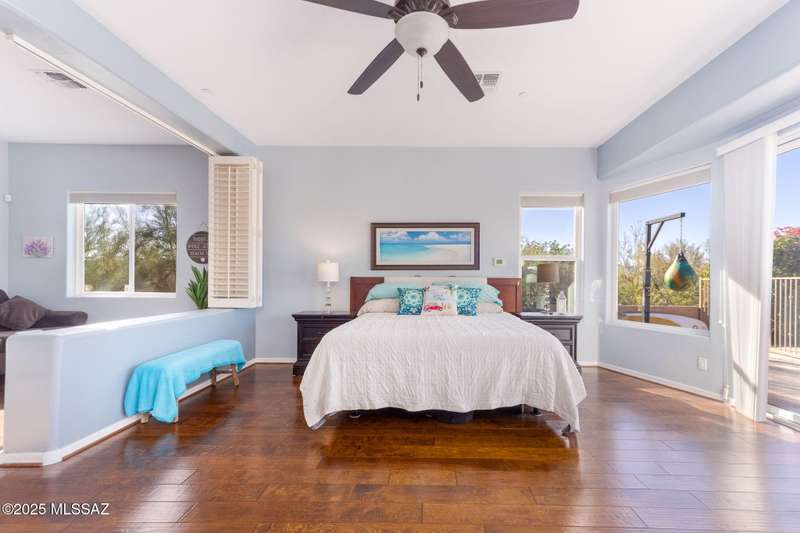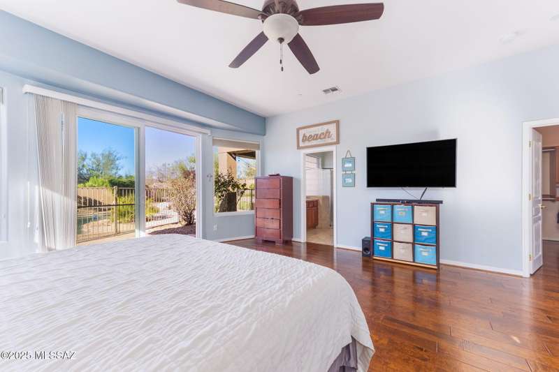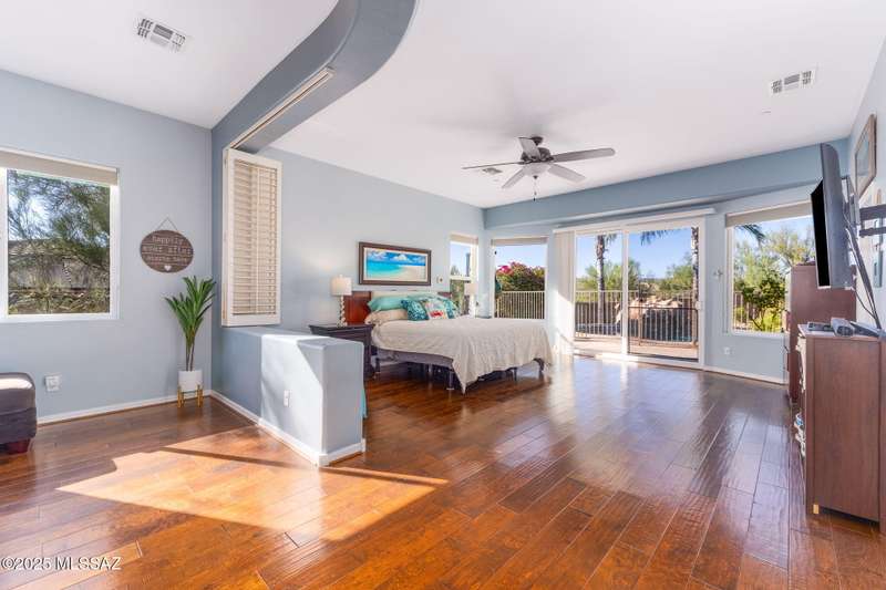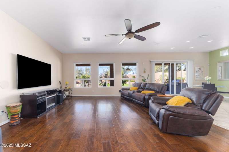 Welcome home to luxury living in desirable Vistoso Ridge! This expansive single-level residence features 4 BR, 3 full BA, and 3,263 sqft of beautifully designed space. Step inside to soaring 10ft ceilings, elegant granite countertops, stainless steel appliances, custom cabinetry, and a spacious master retreat with a sitting room. Custom closet organizers throughout and an oversized 3-car garage complement the interior offerings. Outside, your own private oasis awaits: a flagstone deck, built-in BBQ, heated pool and spa, and lush landscaping make this perfect for both entertaining and relaxing. Many recent updates, including 2 new HVAC units, new pool motor and heater, and new water softener system, add comfort, efficiency, and peace of mind from day one.