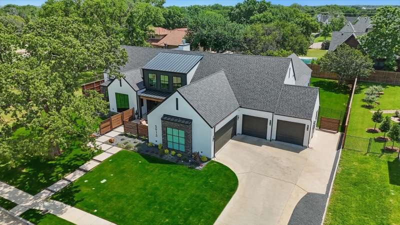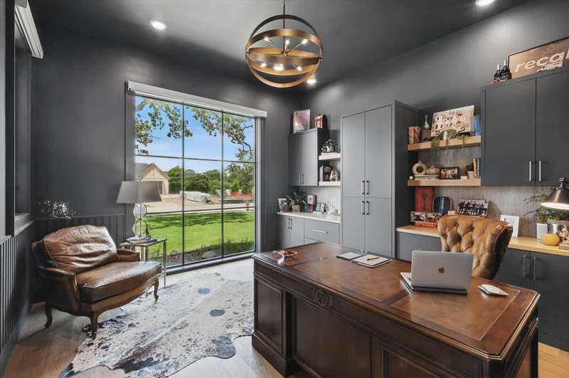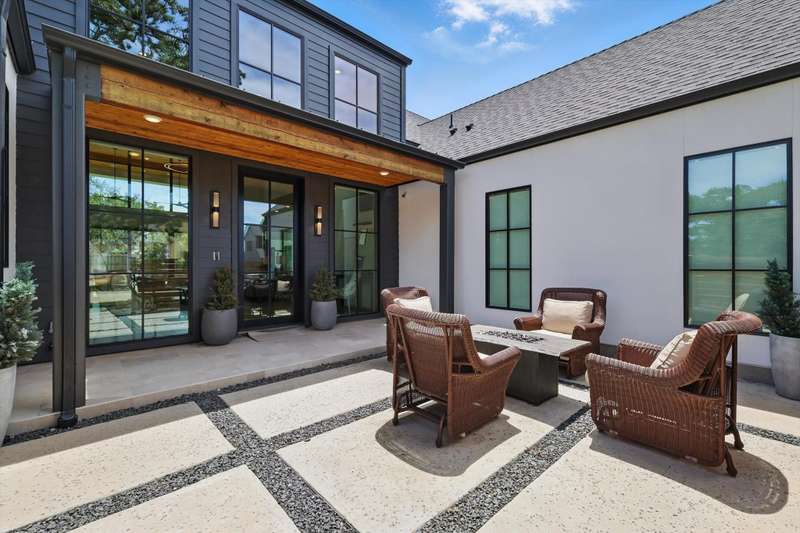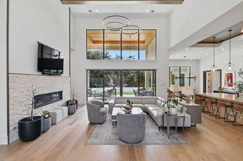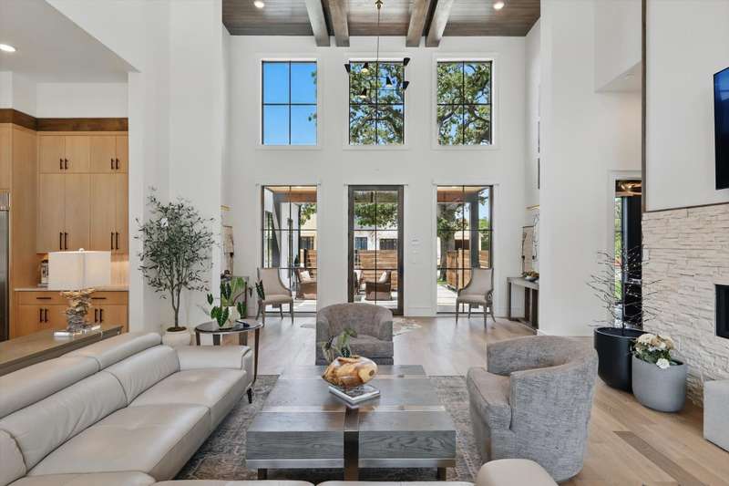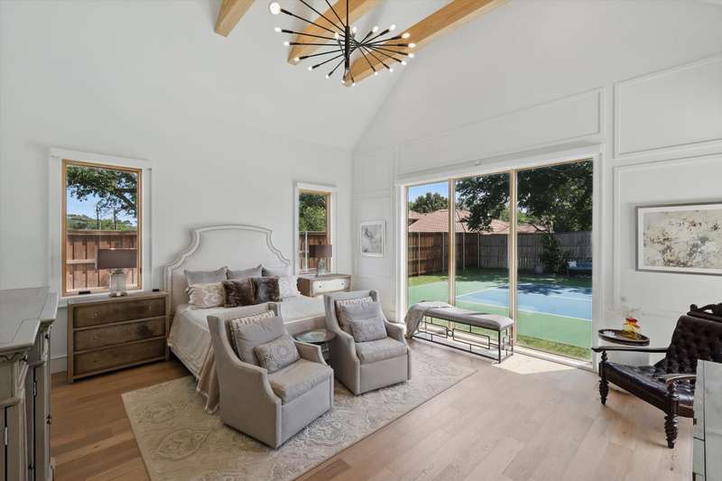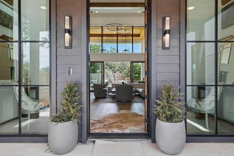 Stunning one story SMART HOME with 4 CAR GARAGE & PICKLEBALL COURT, designed for seamless indoor-outdoor living & entertaining. Out front there's a gated courtyard offering privacy & sunset views. This architecturally designed modern home has high ceilings, hardwood floors, gorgeous custom lighting, wood beams, plenty of storage & floor to ceiling wood-wrapped Pella windows & sliders. The grand family room has an elegant 74-inch Napoleon Vector fireplace & an impressive wall of windows overlooking the spacious outdoor living areas. Designed for both luxury & functionality, the home features an expansive kitchen with its XL island, 6 burner Thor gas range with double ovens, & custom cabinetry. The adjacent prep kitchen has an additional dishwasher, a microwave & space for 2nd fridge, making this a true culinary delight! The vaulted, beamed primary bedroom offers views of the backyard, while the bathroom exudes luxury with custom XL DOUBLE ENTRANCE SHOWER, soaking tub, 2 SEPARATE WATER CLOSETS & 2 WALK IN CLOSETS with EXPANSIVE CUSTOM BUILT INS. Ensuite 2nd & 3rd bedrooms, 4th bedroom-office features floor to ceiling window, wall of built-ins & a SECRET ROOM! XL game flex room at the rear of the home. Laundry room has dog washing station, 2 separate garage entrances (with epoxy flooring and EV outlets). The back does not disappoint with the beautiful private travertine patio, with PICKLEBALL COURT and TOURNAMENT LIGHTING. SMART HOME FEATURES that can be controlled on apps: Doors (including garages), lighting, motorized blinds, sound system, tvs, alarm system, heating & cooling, Lorex cameras, speakers (Sonos). Conveying: washer & Dryer, some flat screens & sound bars; smart home components.