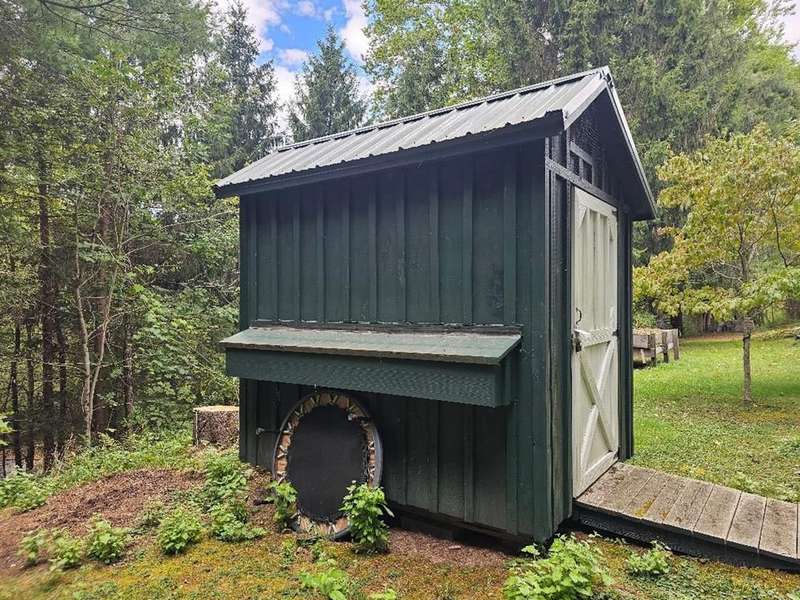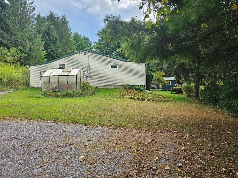 ADJOINS STATE GAME LANDS. A natural spring gravity feeds water to the home! Homesteaders dream! This 32 ACRE property will check a lot of boxes for you if you want to live off grid, with no neighbors, a greenhouse, chicken coup and lots of fenced garden area. There are peach and pear trees, concord grapevines, blueberry bushes to enjoy. The house is a 2 bedroom ranch with an eat-in kitchen, large living room with fireplace and a wrap around porch, perfect for enjoying the view and the wildlife visitors! There is a nice 2 car garage and a metal equipment building, a woodshed, and carport so plenty of room for your vehicles and toys. Selling as is.