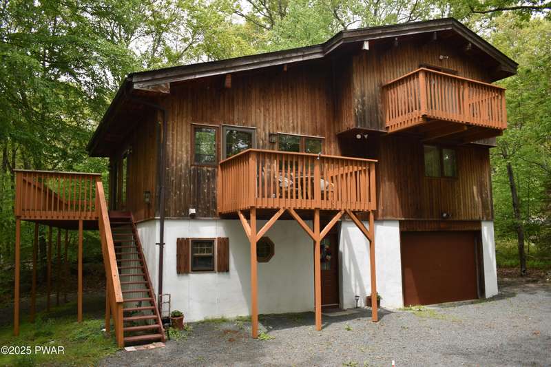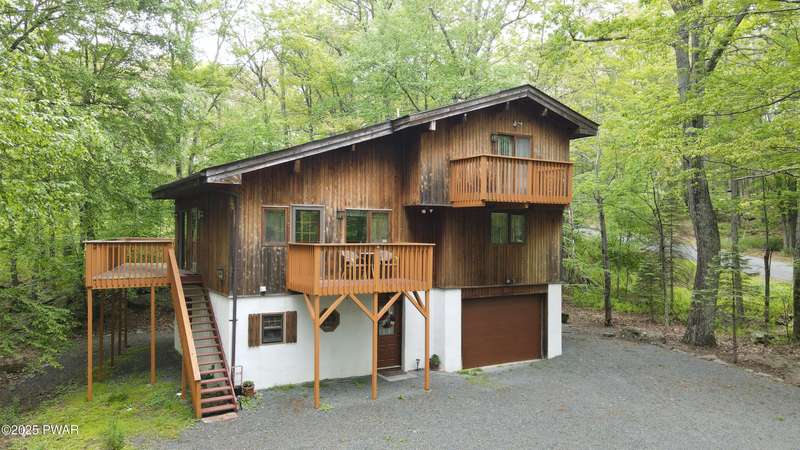 CUSTOM CEDAR RETREAT IN HEMLOCK FARMS. Discover this beautifully crafted 4 bedroom, 3 full bath Lendal Cedar home, custom built and meticulously maintained by its original owner. Situated on a corner lot in the exclusive gated community of Hemlock Farms this home exudes rustic charm and modern comfort. Step inside to tongue & groove cathedral ceilings, rich wooden beams. Lots of natural light with sliders in almost every room. Enjoy views of the 8th hole of the Lords Valley Country Club golf course from expansive decks on two levels. Also perfect for entertaining. Whether you're looking for a full-time residence or a weekend get-away, this home offers the assurance of a well-built home.