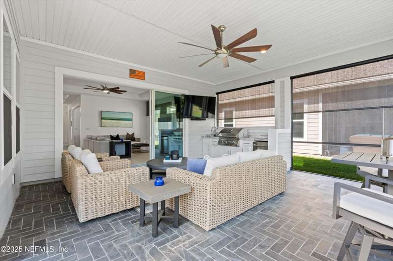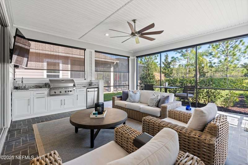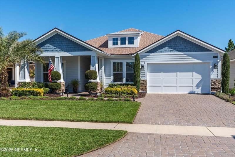 **BACK ON MARKET!!** Stunning coastal home in highly desired Timberland Ridge shows like a model! Fantastic curb appeal with newly upgraded landscaping, outdoor lighting, and pavered front porch. Featuring 3 bedrooms, 3 full baths, and a Flex room that's perfect for an office/playroom. Expansive great room seamlessly opens up to the screened lanai with a new outdoor kitchen, extending your living space and perfect for entertaining. Additional pavered patio with room for a fire pit to enjoy the outdoors. Gourmet kitchen boasts an oversized island with plenty of seating, a gas range, and large walk-in pantry. Primary suite features a spa-like bathroom with soaking tub, dual vanities, and two closets. Split floor plan, each bedroom with their own bath, is ideal for families or guests. 3 car garage has upgraded epoxy floors. As a part of the Nocatee community, you have access to their world class amenities such a pools, parks, playgrounds and more! Just 10 minutes to the beach.