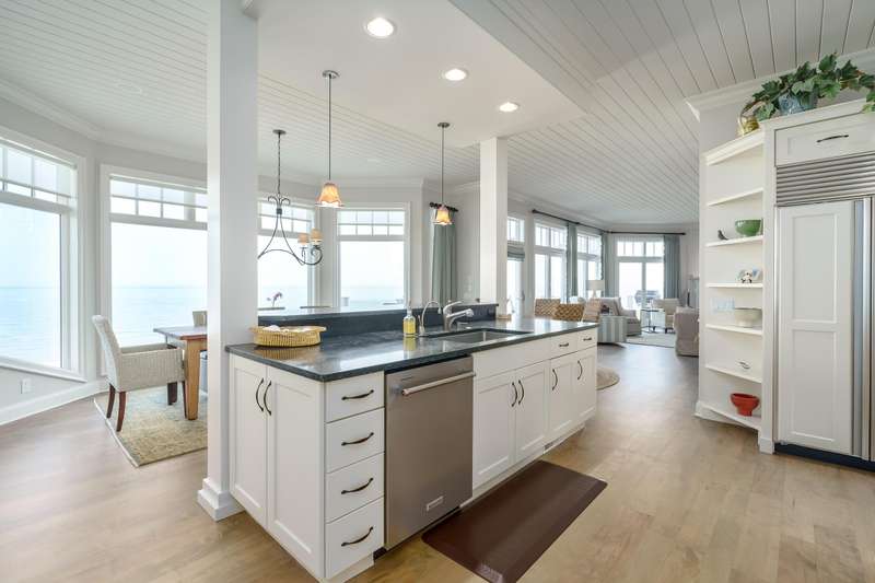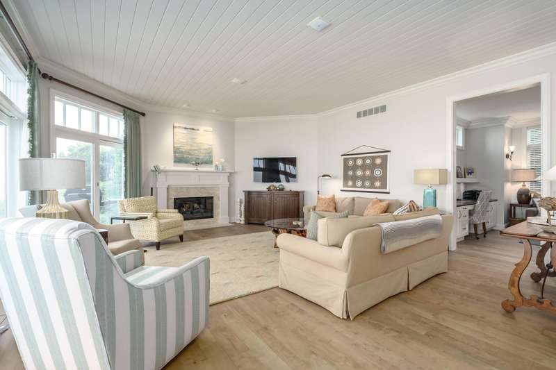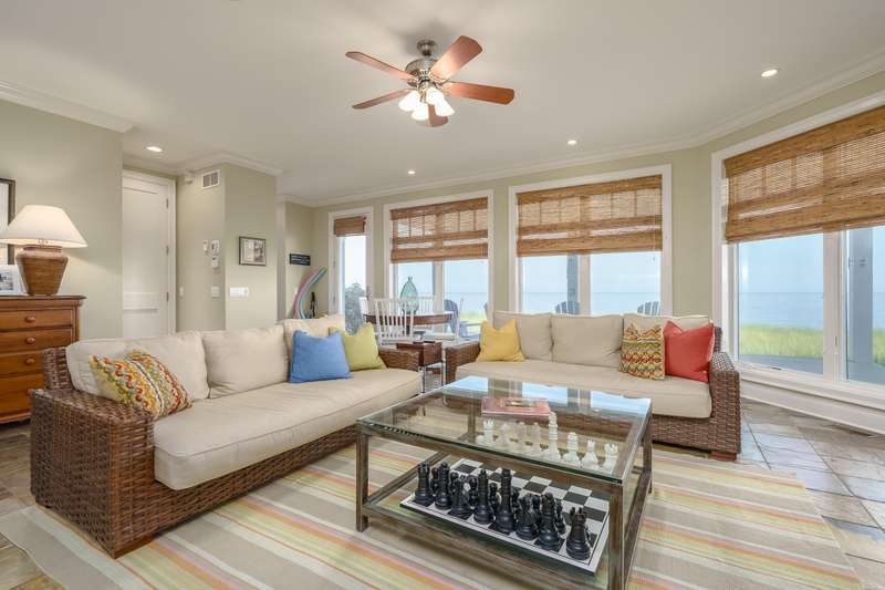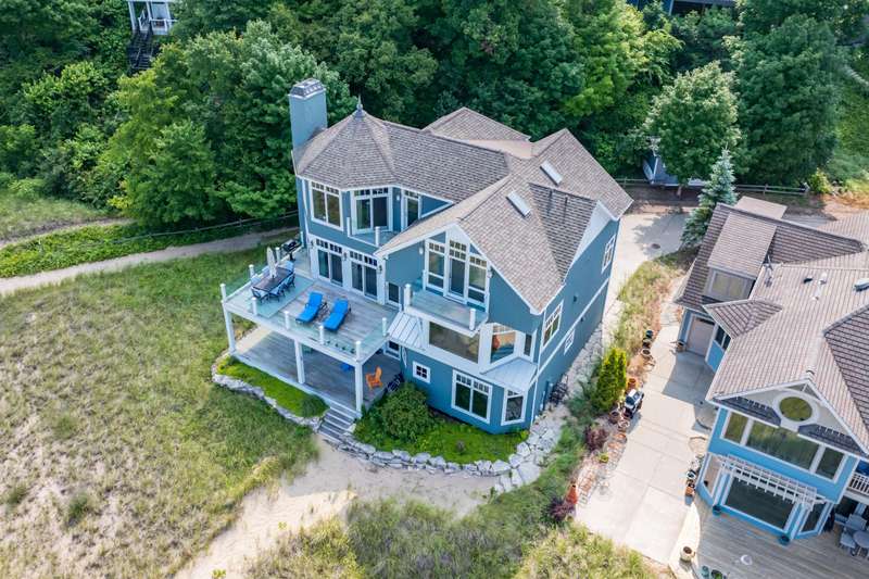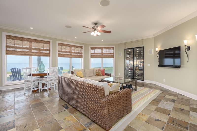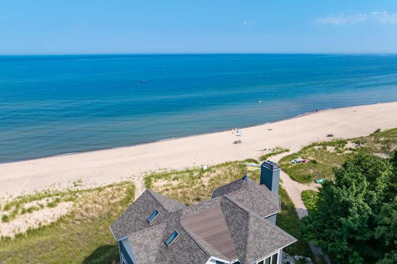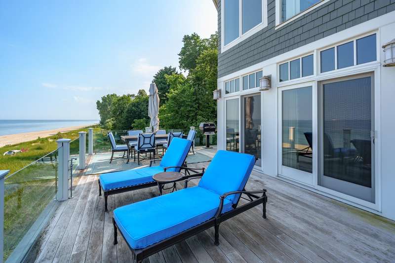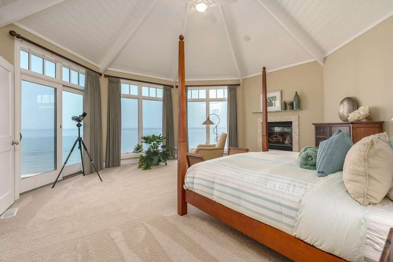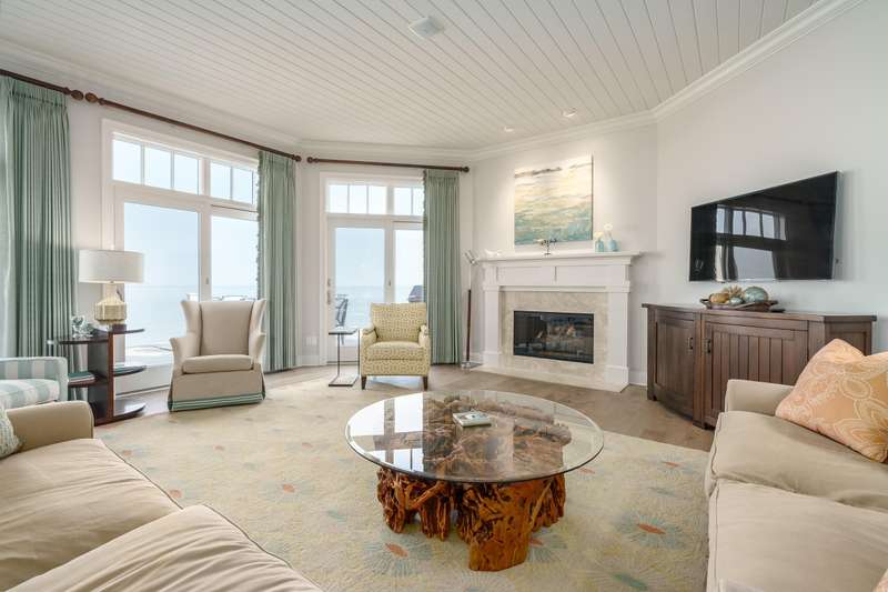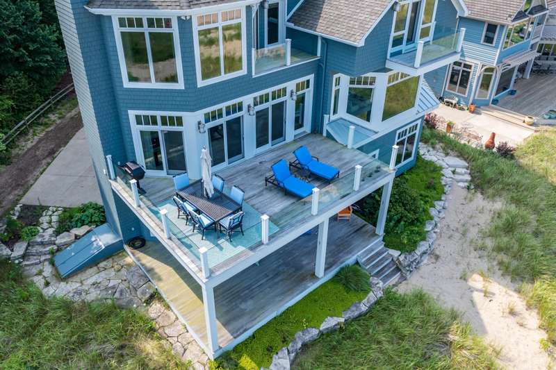 Discover this amazing beachfront luxury home with only sand and windswept grass dunes at your door! Immerse yourself in the waterfront lifestyle as this home boasts four spacious decks and a covered porch off the recreation room at beach level, creating the perfect setting for connection and enjoyment. Step into the main level and discover a sophisticated entertaining space complete with a newly constructed state-of-the-art wine vault, enhanced audio system, and a new high-definition smart TV. This level also features the 4th bedroom, 3rd full bath and beachside porch access to your own private 71ft of beachfront. Experience luxury living with sleek glass railing systems adorning the Ipe deck and easy access from the kitchen to grilling on the new gas Broilmaster grill. The kitchen is a chef's delight with so many amenities including Thermador/Subzero appliances, 6 burner gas range with hood, Thermador convection double ovens, 48" Subzero refrigerator/freezer, natural soapstone countertops, pasta pot filler faucet, instant hot water dispenser, large hallway pantry and a walkin-pantry closet off the kitchen and a spacious dining area with seating for over 20 guests!. The 10ft ceilings in the adjacent great room feature Antique-reclaimed Maple wood with worm holes and all the flooring is walnut. A convenient laundry room with quartz counters, an office with built-in desk and shelves and a powder complete the second level. The third floor is home to three bedrooms( one has a private deck), second full bath, and a fabulous primary suite featuring a gas fireplace, authentic wood ceiling, private deck and a luxurious bath with heated marble flooring, marble steam shower with heated floor, multiple heads in the shower and a separate Whirlpool cast iron tub. Please see more details of the custom finishes in the home on the attached documents, shared in the MLS listing. The home is being sold completely furnished, with a few exclusions of art, tools, bikes...listing agent can provide to buyer's agent.