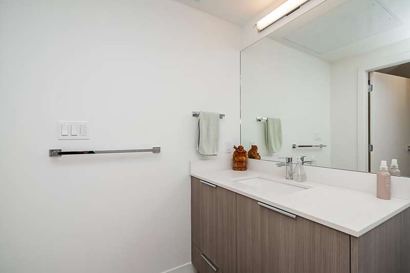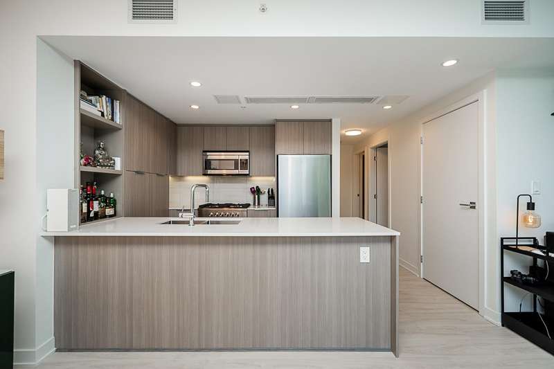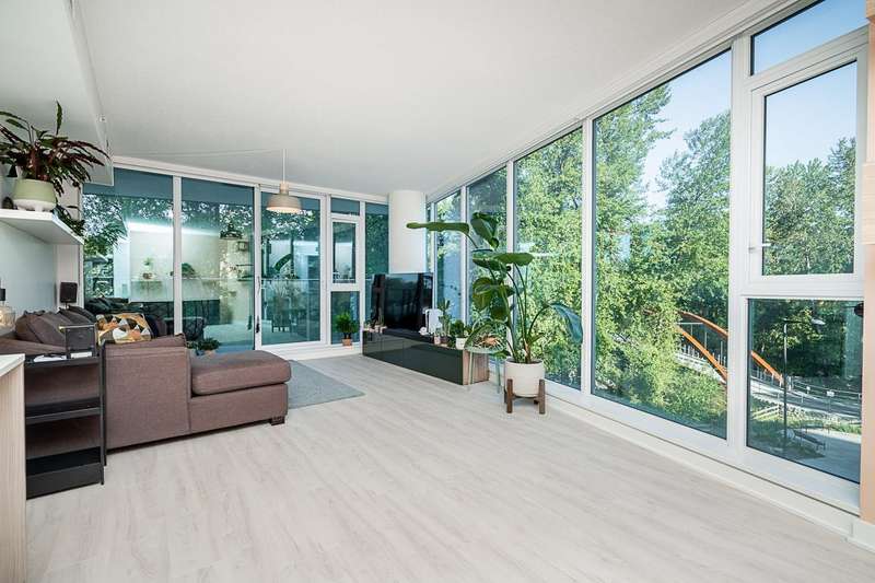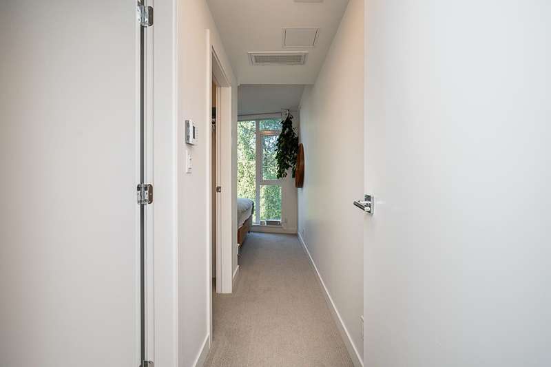 Built in 2022 in the picturesque Lynnmour neighbourhood of North Vancouver,, this 2-bedroom, 2-bathroom residence offers 1,000+ square feet of interior living space, plus a generously sized balcony with serene forest views. The primary suite boasts a walk-in-closet and 4-piece ensuite. The kitchen includes sleek cabinetry, quartz countertops, luxury stainless steel appliances, and pantry space. With accessibility design features throughout and excellent amenities, including air conditioning, club house, gym, sauna, and the nearby Community Centre and Public Plaza. Includes in-suite laundry, 1 parking, bicycle storage locker, and balance of New Home Warranty.