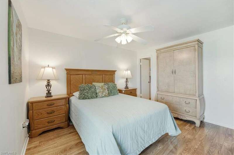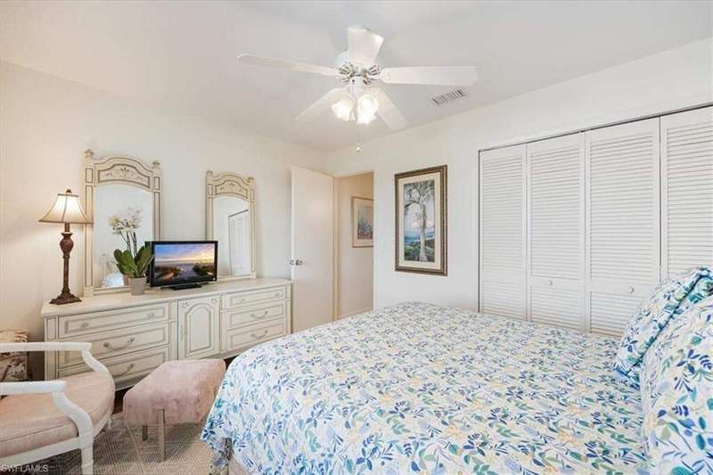 Stunning Turnkey Condo Overlooking Hibiscus Golf Course - VA Approved Community Unit D37 has it all. Experience luxurious, carefree living in this beautifully updated third-floor condo offering 1,126 sq. ft. of thoughtfully designed space. With convenient elevator access and brand-new impact-resistant windows built to withstand Category 5 hurricanes, you'll enjoy both comfort and peace of mind. Step inside to tall ceilings and a fresh, modern ambiance, no popcorn ceilings here! This turnkey residence comes fully furnished with high-end leather furniture and curated artwork, blending sophistication with inviting warmth. The kitchen features quality appliances, including a brand-new over-the-range microwave, while laundry is conveniently located in the residence for ease of living. Unwind on your private, air-conditioned lanai with sweeping views of the Hibiscus Golf Course fairway, tranquil pond, and swaying palms. Covered parking with extra storage, a newer HVAC system, and energy-efficient impact windows further enhance this home's appeal. Vista Palms is a vibrant VA Approved 55+ community, offering a lifestyle as active as it is refined. Ideal as a primary home, seasonal retreat, or investment property, this residence presents an exceptional opportunity to embrace Southwest Florida living at its finest. Welcome home.