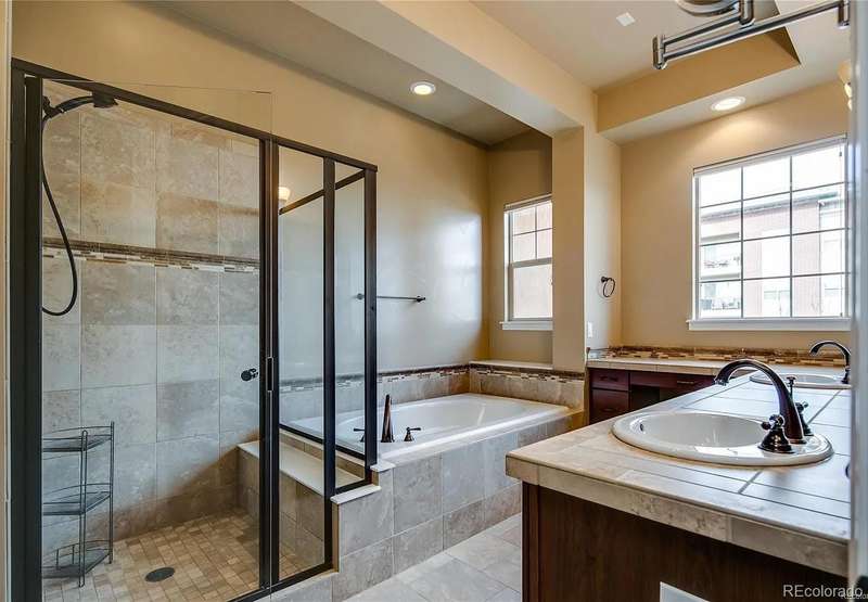 Beautifully finishes in the Seine model Row home, New upgraded carpet, Granite, Tile & Hardwood finishes, Stainless appliances, Main floor Study/Bedroom for Guest, Large front patio & covered patio. RowHome in fantastic condition, walk to fine restaurants and retail. short walk to Light Rail with instant access to I-25. UPSCALE in every way. oversized finished garage with storage, Central Vac, 3 zone heating and central AC, new carpet through out and shiny hardwood floors, Granite and accent tile, cherry wood cabinets, volume ceilings. No smoking. FANTASTIC restaurants, coffee shop, and parks just steps away.