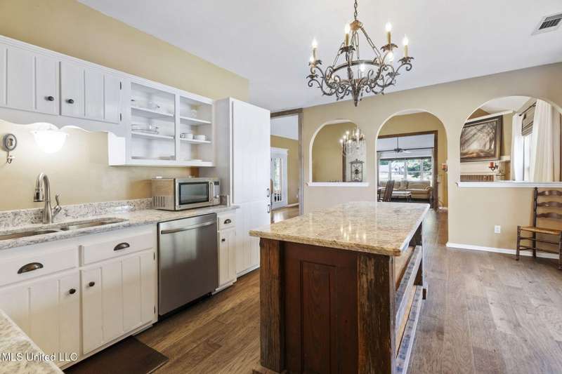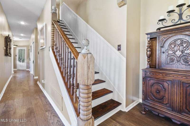 ? Lewisburg Schools ? West-facing lake views ? Pecky Cypress sunroom ? 3D tour available ?Enjoy peaceful lakefront living at 3831 Lake Village Cove in Olive Branch, MS. This spacious 4-bedroom, 3.5-bath home offers over 3,000 square feet of comfortable living space in the Lewisburg School Zone. Located in a 100% USDA Eligible area, the property blends modern updates with timeless charm in a quiet community featuring neighborhood lakes and open green spaces.The main level features a primary suite with three walk-in closets, a large soaking tub, walk-in shower, and dual vanities . . . plus an office that can also serve as a guest room or nursery. The kitchen includes granite counters, a center island with reclaimed barn wood, stainless appliances (refrigerator remains), and ample cabinet space, open to the large dining area with wood floors and a brick fireplace. The great room's expansive windows overlook the lake and flow into the sunroom framed in Pecky Cypress with decorative tile floors and panoramic views.Upstairs are three generously sized bedrooms, two full baths, and a second laundry area with a stackable washer and dryer. All upstairs flooring is luxury vinyl plank for durability and easy care.Outside, a flagstone patio and yard back to a fishable pond with peaceful sunset views through mature trees. The circular driveway and 2-car garage offer plenty of parking.This home includes a 3D virtual tour and has been well maintained with energy-efficient windows, updated flooring, and modern finishes throughout.Conveniently located less than 10 minutes from Silo Square for shopping, dining, and entertainment; Snowden Grove Park; Olive Branch City Park, Old Towne Olive Branch, and easy access to Highway 78 for commutes to Memphis.