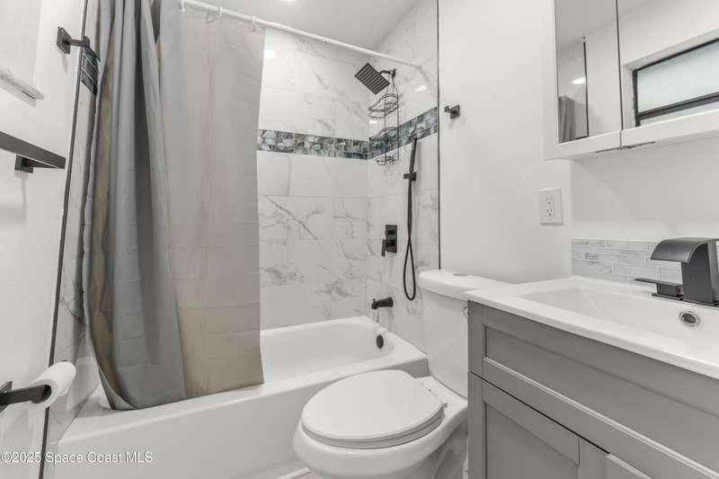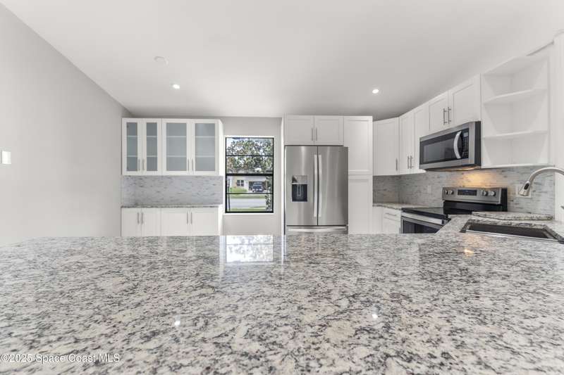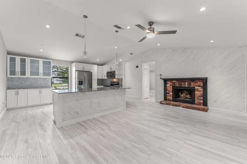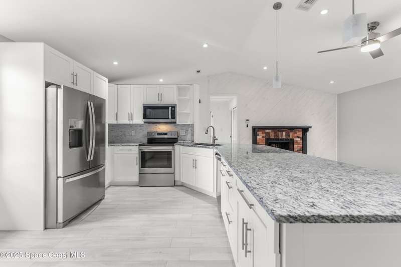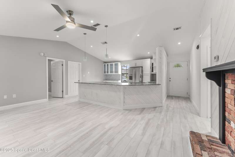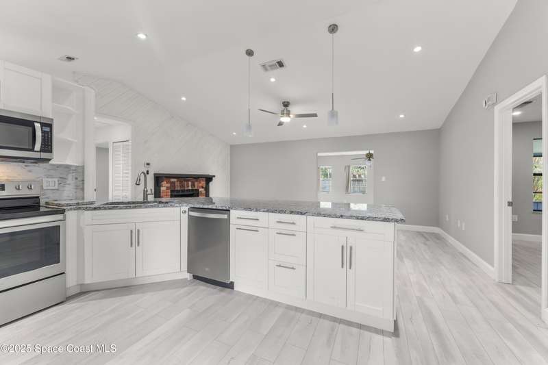 ****New Roof To Be Installed November 2025**** This newly renovated 3-bedroom, 2-bath home in SE Palm Bay perfectly blends modern style with everyday convenience. Step inside to an open-concept design highlighted by luxury vinyl plank flooring and crisp, neutral finishes that make every space feel fresh and inviting. The chef-inspired kitchen showcases sleek quartz countertops, stainless steel appliances, and soft-close cabinetry, while a versatile flex room adds the perfect touch for a home office or second living space. Outside, the fully fenced backyard offers privacy and endless possibilities for entertaining or relaxing. Ideally located near shopping, dining, I-95, and just minutes from the beach, this home is truly move-in ready. NEW A/C 2025 and Roof 2018.