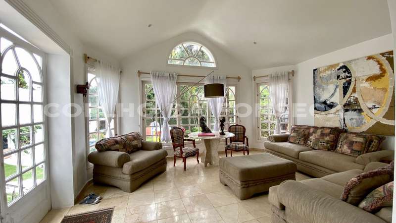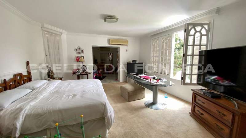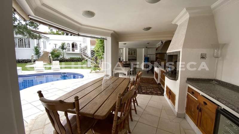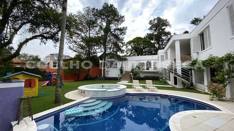 Casa deliciosa em rua tranquila, com total segurança, muito verde e um maravilhoso jardim, que é o ponto alto da casa. Possui um amplo living com lareira e varanda, sala de jantar, escritório, sala de TV, 4 suítes, excelente cozinha com copa, área de serviço e quartos para empregados.Uma suíte master enorme, com closet, 2 salas íntimas, totalizando quase 100 metros quadrados. A casa precisa e tem grande potencial para reforma!