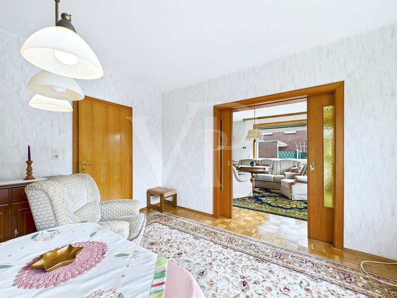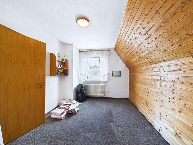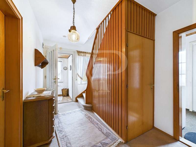 For sale is a well-maintained detached house built in 1969 and situated on a plot of around 648 m². With a living space of approx. 104 m² and a well thought-out room layout, this house offers a total of 4.5 rooms, including two bedrooms and a bathroom. The exterior walls were insulated in 2000. The plumbing was partially renewed and the electrics completely replaced. A year earlier, in 1999, the heating and the hot water tank were updated. The property is therefore in very good condition and offers a solid basis for future adaptations or extensions. The layout of the house is functional and comfortable. The entrance area leads through the hallway into the bright living room, which is divided into two rooms by a sliding door. The adjoining kitchen has a practical layout and offers enough space for family meals together. A shower room with walk-in shower completes the layout on the first floor. A beautiful wooden staircase takes you to the upper floor, where two spacious bedrooms and another smaller room await you. A special highlight is the convertible attic, which offers additional potential. The partial basement, where the gas boiler is located, is also a plus as it is dry and well-maintained and offers additional storage space. In the outbuilding you will find a workshop, a utility room and a garage with a sectional door. The outdoor area of this property impresses with an outdoor seating area that invites you to spend relaxing hours outdoors. The garden is easy to maintain and offers plenty of space for individual design options or outdoor play. All in all, this detached house offers an excellent opportunity to realize your dream of owning your own home. The modernizations that have already been carried out, such as the insulation of the exterior walls and the partial renewal of the plumbing and electrics, ensure a contemporary living experience and offer good conditions for efficient energy consumption. The potential for expansion, particularly through the convertible attic, makes this offer particularly attractive. For further information or to arrange a viewing appointment, please do not hesitate to contact us. This property offers you the opportunity to move into a well-kept and well-equipped living environment and at the same time create space for your own design ideas.