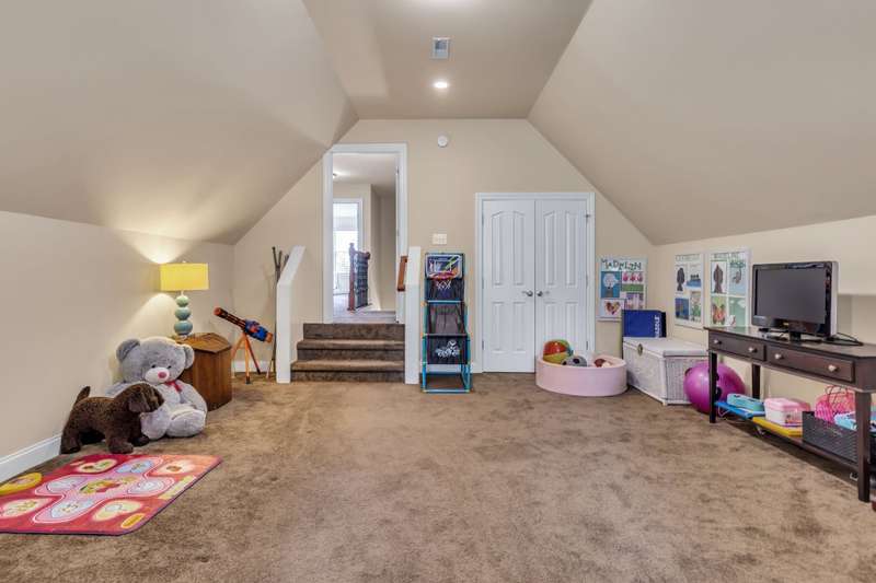 Upstairs, there are three additional bedrooms, two full bathrooms, and a large bonus room over the garage ideal for a playroom, media room, or home office.