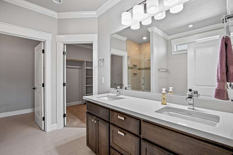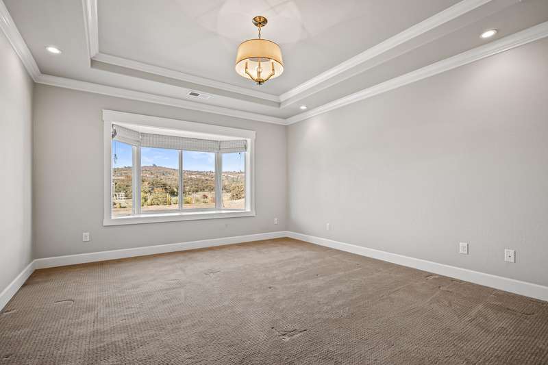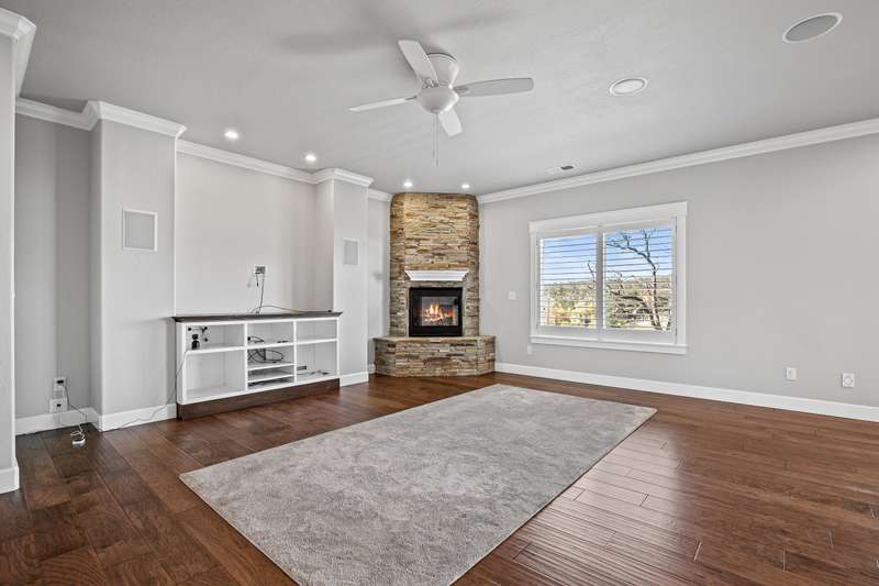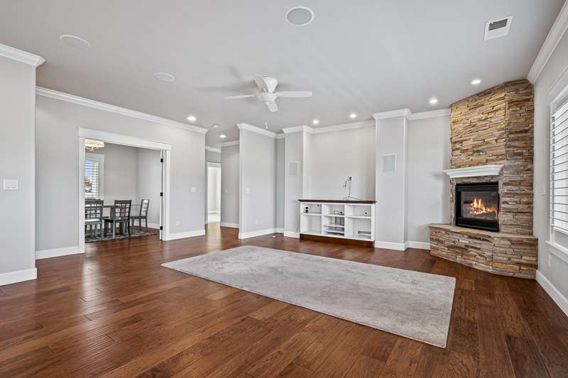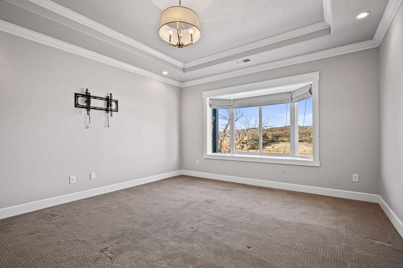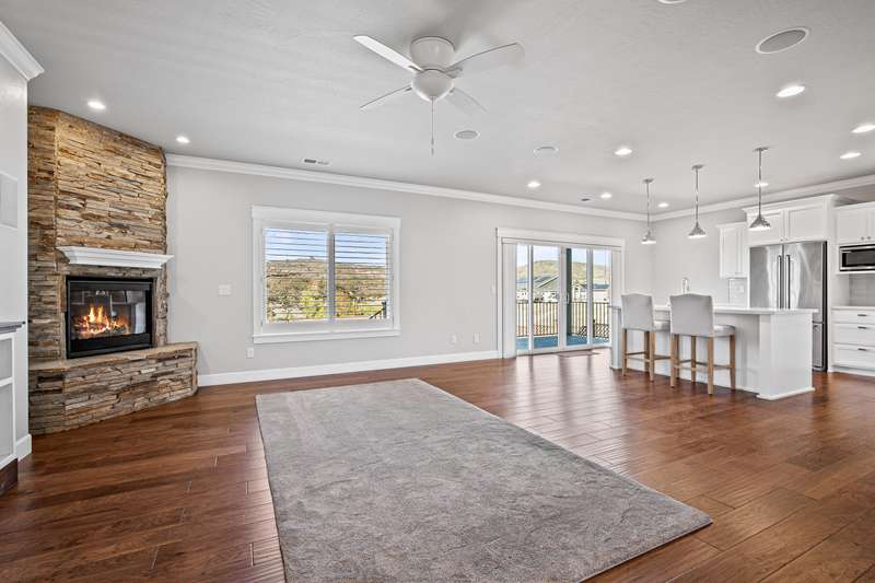 Amazing Location • Incredible Unobstructed Views • Single Level • 3-Car Garage • Too Many Upgrades & Extras to List All • MUST TOUR! Excellent split bedroom floor plan with potential for dual primary suites or a perfect mother-in-law setup, all on one level. This stunning custom home showcases top-quality craftsmanship throughout, with nearly every upgrade imaginable. Features high-end real wood engineered floors, white cabinetry, quartz countertops, and premium stainless steel appliances including the refrigerator. The open concept living area offers a gas fireplace, custom shutters, and an incredible deck perfect for entertaining or relaxing. The luxurious primary suite has beautiful mountain views, double coffered ceilings with crown molding, soaking tub, tile shower, bidet, and oversized walk-in closet. Finished three-car garage, central vac, low-maintenance landscaping, garden area, and a huge bonus room below for storage or potential living space. Truly amazing.