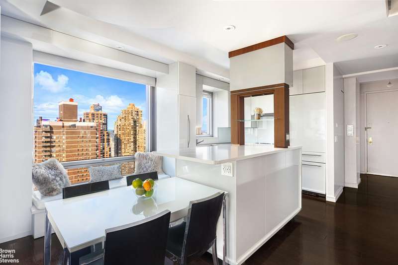 BLOWOUT PRICE! Off Central Park & ONE BLOCK FROM BILLIONAIRES ROW! MOVE IN READY ! Serenity in the Sky w/ lifestyle living! ; This condo is flooded w/ light featuring south city views & West to the Hudson River too! Taken back to the studs, this E line has a rare TWO FULL BATHS! This ; owner is all about serenity, calm & spa like Chromotherapy living! The floor plan has been opened up, walls removed & plumbing & electric was upgraded to accommodate more bells & whistles & elevate this home to the next level. Calling all chefs! Unique to the building & the "E" Line this kitchen floor plate was totally redone including expanding & removing walls to create a much lighter feel. It features custom millwork cabinetry that was designed with deeper cabinets & there is a vented hood , instant filtered hot water & updated everything including the plumbing & gas lines so you can watch the clouds float by from your sink now! In addition to the oversized picture window there are high end appliances including Miele, Bosch and more! Residence 39E includes the sought after private new Miele washer dryer. There is also a new HVAC in the kitchen as well . There are 2 Full bathrooms also renovated and the primary bathroom was gutted to the studs . The primary bathroom feels like something out of a high end European SPA retreat! Even with the famous light therapy feature "CHROMOTHERAPY" plus there's Oversized Ovo silk deep soaking tub in glossy white and a rain shower (with waterfall option ) There are heated floors and a Duravit toilet too! The guest hall bathroom includes an oversized picture window with updated electric to accommodate an Ove brand bidet toilet. There is a walk in Marble shower, a porcelain sink and nickel hardware. The bedroom also taken back to studs w/walls removed and relocated to now allow looking at the river from your bedroom! ; It also features a stunning white built in desk with a Caesar stone top and wood cabinetry and best yet a dreamy oversized picture window to watch the clouds float by. ; There are smart home features throughout - voice command for lights, remote control shades and the Lutron brand smart light system switches. In addition there is the Control 4 - Sonos wired sound system and for those who dream of A/C in the winter you can have that 365 days a year too! Plus custom recessed overhead lighting! This condo building also brings their A game with an elevated lifestyle living experience as well! To start if you prefer privacy when your guests visit this Central Park place established condo (100% owned) has a rare perk! Central Park Place condo owners have access to 4 guest rooms in this condo! (for a nominal fee) . This Luxury condo also has tons of amenities managed by Elite brand. There is a state of the art fitness club with a pool to swim and a fitness center that includes free weights and work out rooms with lots of equipment such as Cybex, Precor, Stair master, a boxing bag , yoga room , massage room, a sauna and locker rooms as well. The health club center has a party lounge space with a kitchen for events and a landscaped outdoor deck/ terrace with patio furniture and city views too! There is a 24 hour service oriented staff and best yet no more waiting! They are in the process of installing 4 brand new 2025 elevators! Thank you for your patience! This condo is pet friendly and is located right off Central Park South with the train on the corner and ; 800 acres of nature , billionaires row, The shops at Columbus Circle with world class dining and envied international shopping experiences too! In addition you are near Nordstrom's, Lincoln Center, Whole Foods and convenient transportation out your door! You could not ask for anything more! (Taxes $942 per month reflect primary residence /$1150 is for non primary ) ;