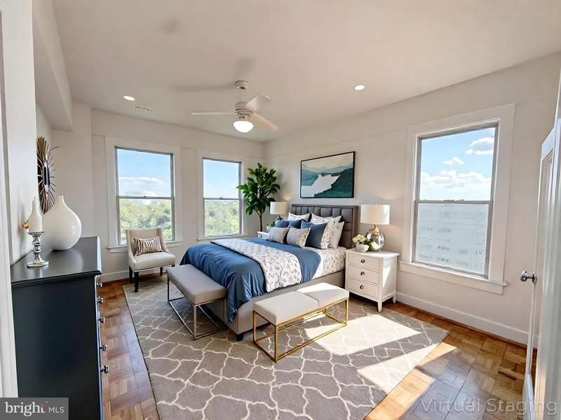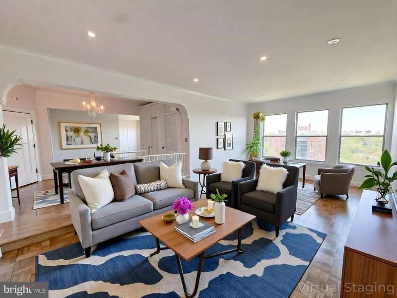 Welcome to 4000 Cathedral Ave NW, located in the South main building at Apt. 848B and 849B. Spanning approximately 2,000 square feet, this exceptional top-floor residence offers breathtaking and ever-changing views, making it a truly inspiring place to call home-beautiful at any time of day or night. This spacious 2-bedroom, 2-bath unit features two winged suites-one facing southeast and the other southwest-positioned at one of the highest elevations in NW Washington. From any window, you can enjoy stunning vistas: the top of the Nation's Capitol, the Washington Monument, Roslyn, the Potomac River, Alexandria, and Tysons Corner. Enter this end-unit through 848B, located at the hall's end. The foyer divides each wing, inviting exploration of charming details like crown moldings and elegant Art Deco archways. Built-in bookshelves flank the opening, leading to a beautifully appointed galley kitchen featuring granite countertops, a stainless undermount sink, KitchenAid stainless dishwasher, GE Profile refrigerator, and a Jen-Air 4-burner gas range with oven. A Thermidor stainless exhaust hood and a view from the kitchen window provide inspiration for every culinary enthusiast. Adjacent to the kitchen, the foyer leads to either wing, offering versatile spaces for dining and relaxation. Each wing boasts large living rooms perfect for entertaining, along with large closets, freshly painted interiors, and stunning refinished parquet floors that enhance the light-filled ambiance. Both bedroom suites feature spacious walk-in closets, remote-controlled ceiling fans, and updated bathrooms with either a tub and shower combo or a walk-in shower. Modern chrome fixtures and timeless black-and-white ceramic tiles add to the bathroom's elegance. This exceptional residence combines panoramic views, elegant details, and thoughtful updates-truly a special place in NW Washington. Situated on nearly 10 acres, the Westchester Co-op was built during the Great Depression & completed in 1931. As noted in many publications, it has extraordinary Art Deco classic features. You will be mesmerized by its charm of yesteryear and memories influenced by the roaring twenties, such as its metal-etched elevator doors, elegant archways, and plastered moldings. Notice the beautifully manicured grounds, gardens, brick and stone walkways, a center sunken fountain, and a Porte cochere in front of the main building. The Westchester boasts great amenities, including a market grocery store, a beauty parlor, a barber shop, a fitness center(in the process of a renovation update), dry cleaning/Valet service. All of the buildings at 4000 Cathedral Ave. are connected by ground-floor hallways, making it extremely convenient to get around, regardless of the weather. Plus, there's an underground reserved parking garage with a short waiting list, extra storage options, and guest rooms available for friends and family visiting you! For a coop mortgage approval, you'll need a minimum of 15% down, and we can provide a list of approved lenders if you need it. Public transportation is available, with the Metro bus stop located right in front of the building on Cathedral Avenue, and the Tenleytown Metro station is approximately a mile away. Other conveniences include: Whole Foods, Wegmans, Safeway, CVS, a vast selection of local ethnic restaurants, boutiques, the historic grounds of the National Cathedral, and many other places of worship. Feel free to reach out to the listing agent with any questions you may have or to set up a time on Showingtime or agent for access through the main lobby to the left toward south main front desk. Please note desk hours are often limited on the weekends. Please call after normal business hours at any of the entrances for access.