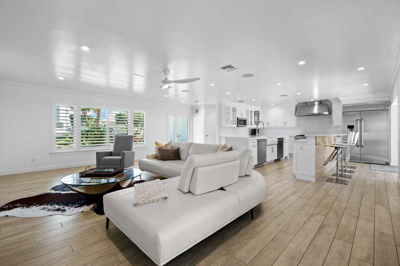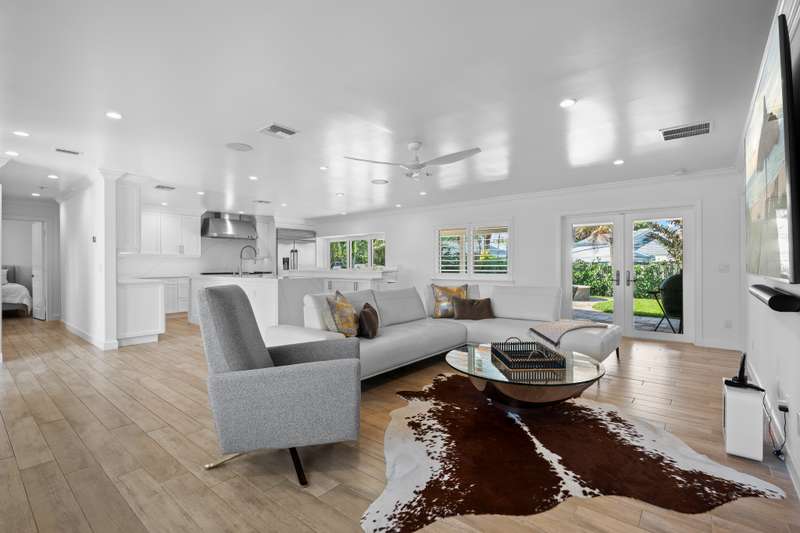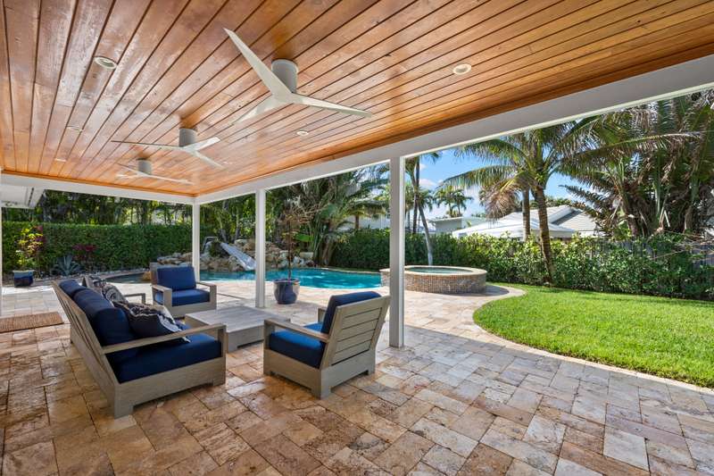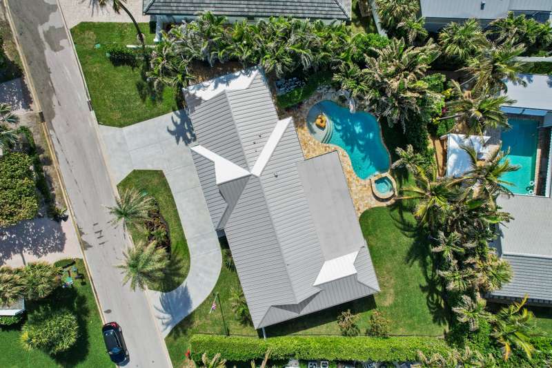 Located in the exclusive beachfront community of Jupiter Inlet Colony, this beautifully renovated 3-bedroom, 2-bath home is just steps away from the beach and Intracoastal. This home is the perfect vacation retreat. Enjoy relaxing in the saltwater pool with a serene waterfall or take a short walk to snorkel under Cato's Bridge. The property is also close to the JIB Club Marina and Como Park, offering plenty of outdoor activities. Inside, the gourmet kitchen is a chef's dream, featuring a double island, two dishwashers, an industrial-sized refrigerator, double ovens, and a gas stove top. For dining and entertainment, you'll be just 5 minutes away from top local restaurants such as Blackbirds, Lynora's, 1000 North, and U-Tiki.