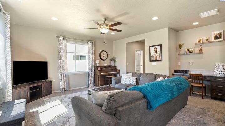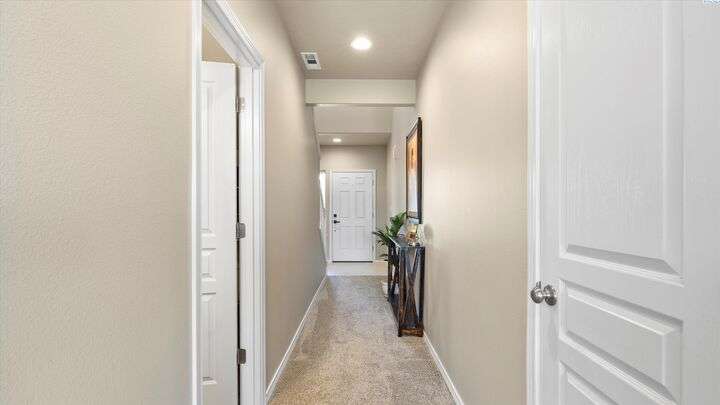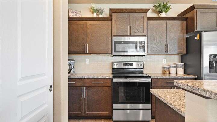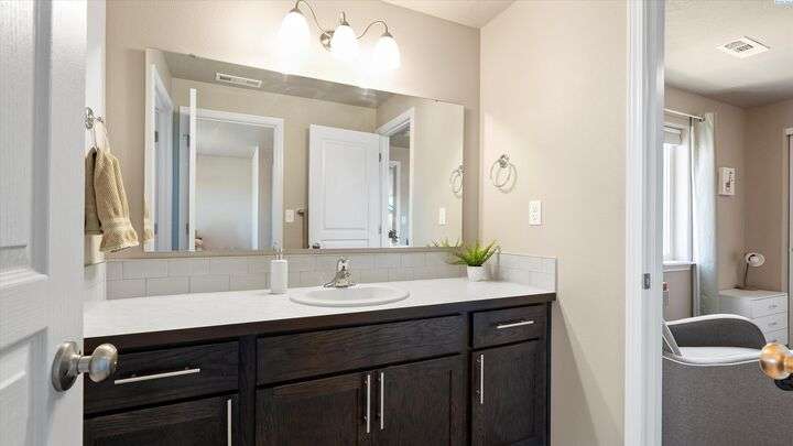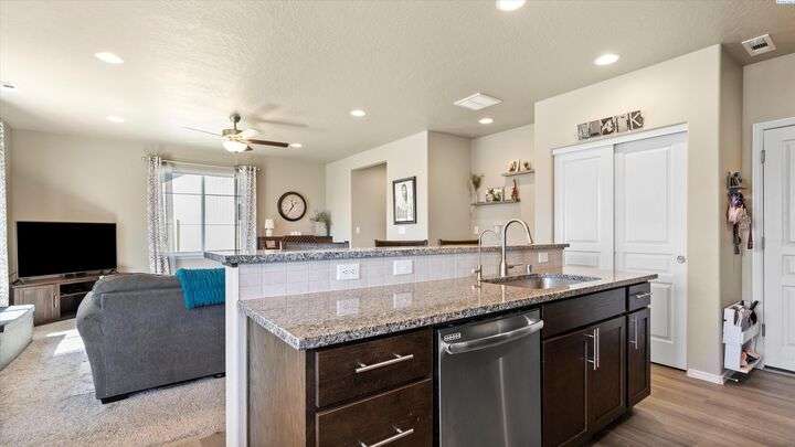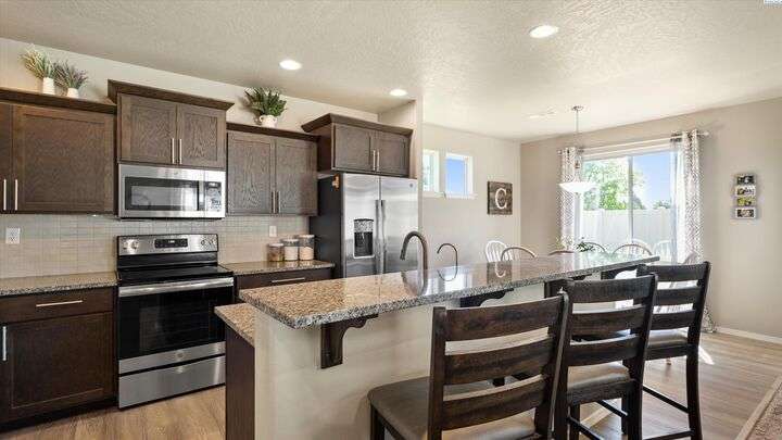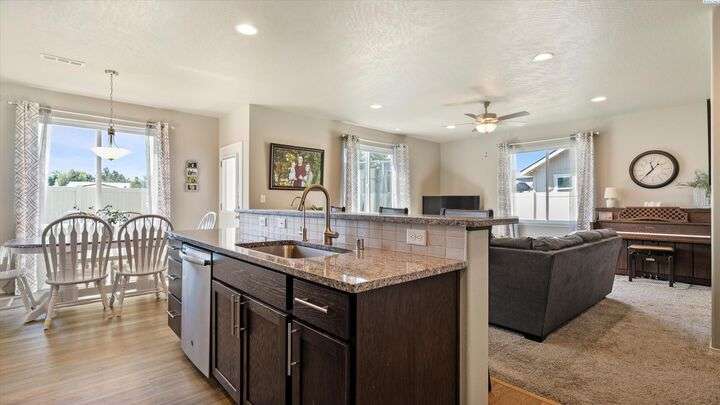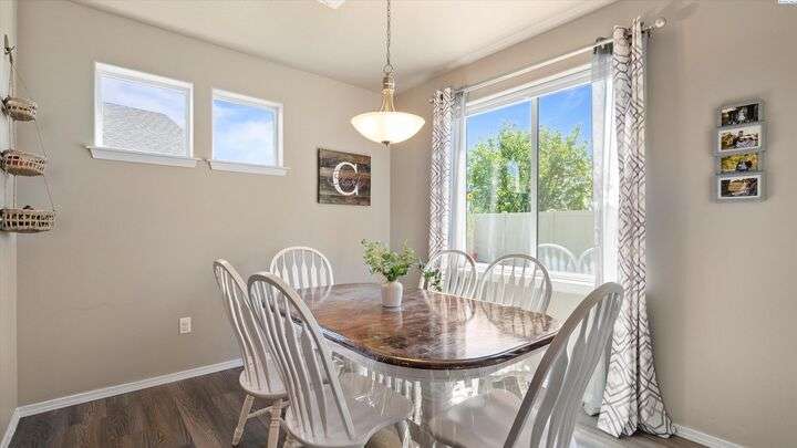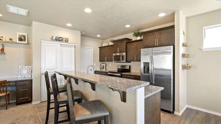 MLS# 286604 Move-in ready and beautifully maintained, this charming 3-bedroom, 2.5-bath home, built in 2020, offers 1,804 sq ft of comfortable living space in a peaceful Kennewick neighborhood. Step inside the inviting walk-in foyer and be greeted by a cozy living room featuring a built-in desk—perfect for working from home or managing household tasks. The open-concept design flows effortlessly into the dining area and stunning kitchen, which features brand new luxury vinyl plank flooring, sleek granite/quartz countertops, a breakfast bar ideal for casual meals, and a state-of-the-art reverse osmosis water system right at the kitchen sink. Upstairs, retreat to the spacious primary suite complete with a generous walk-in closet, while the two additional bedrooms are thoughtfully connected by a Jack & Jill bathroom—great for family or guests. A conveniently located laundry room on the upper level makes laundry day easier than ever. The attached two-car garage provides ample space for vehicles and extra storage. Step outside to your fully fenced backyard, where you’ll enjoy tranquil views overlooking open farmland and a horse pasture—offering privacy and a picturesque backdrop with no rear neighbors. This home is perfectly situated just a short 5-minute walk to the popular Wake Up Call coffee shop, ideal for grabbing your morning brew, and only minutes by car to shopping, dining, entertainment, and quick access to Highway 395 for an easy commute. Low-maintenance and move-in ready, this home is a fantastic opportunity for first-time buyers or anyone looking to combine comfort, convenience, and beautiful surroundings into one perfect package. Don’t miss out on this exceptional Kennewick home!