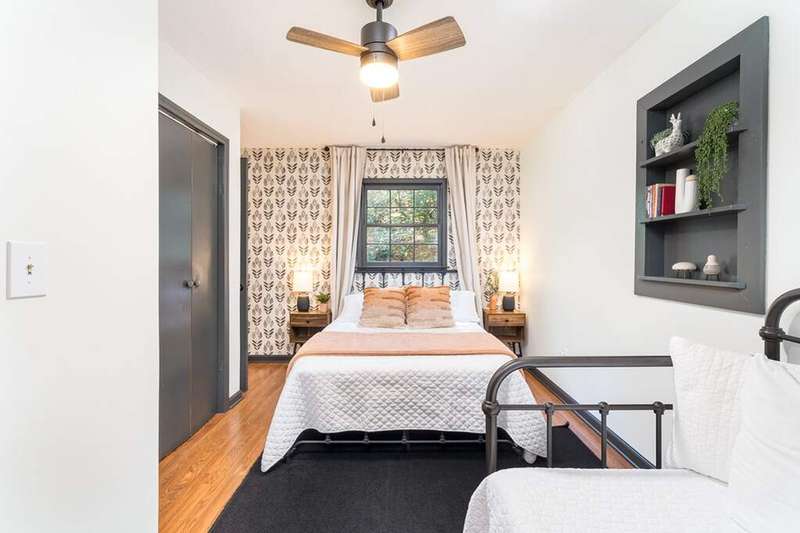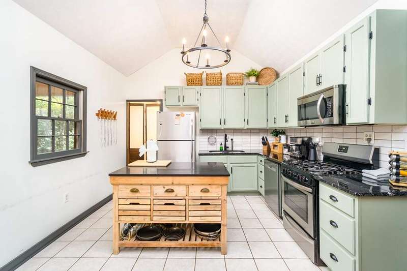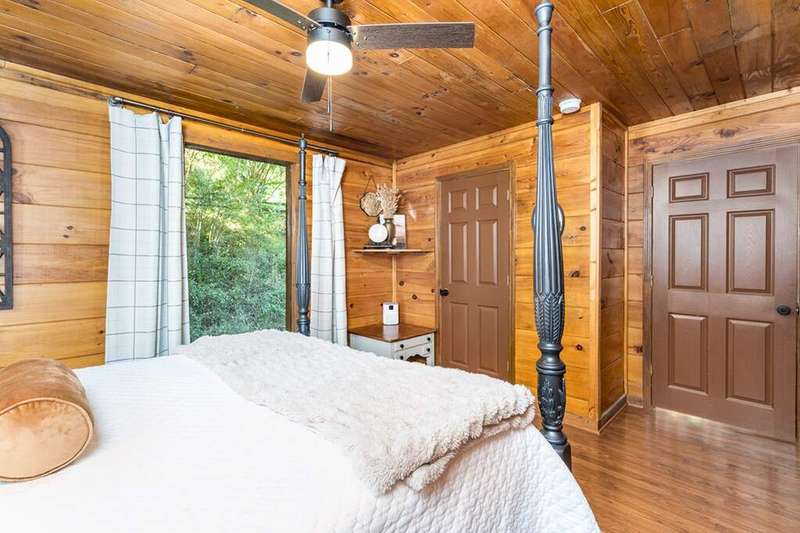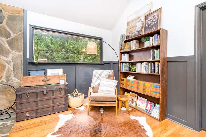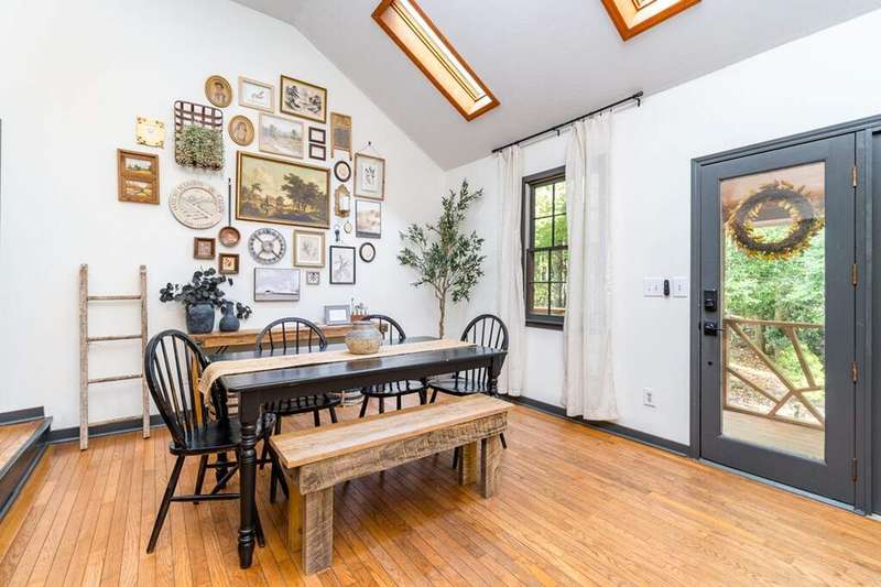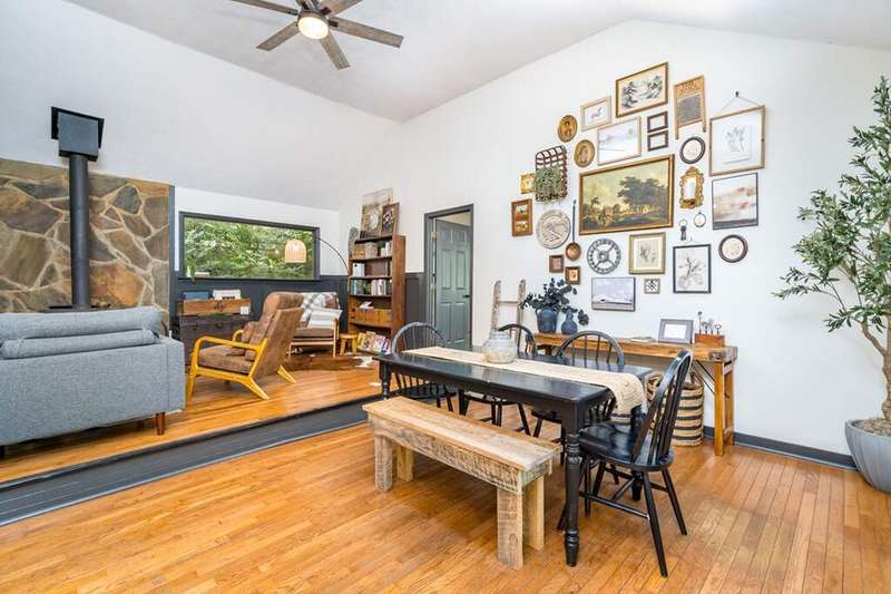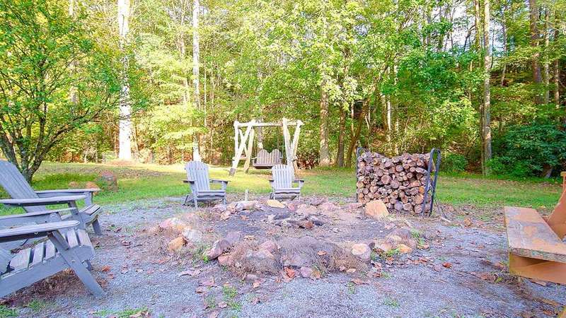 Welcome to your dream mountain retreat! Nestled in the picturesque mountains close to Vandegriff Creek in Elijay, GA, this enchanting ranch cottage offers a harmonious blend of natural beauty and modern luxury. *Spanning 3.52 acres, with over 350 feet of pristine creek frontage, this home is a rare sanctuary for those seeking tranquility and refined living. Step inside to vaulted ceilings with skylights that flood the space with natural light.warm hardwood floors and tastefully updated lighting and hardware add a touch of sophistication. The open-concept floor plan creates an inviting space for entertaining and making memories with loved ones. *The heart of the home, the kitchen, boasts striking black granite countertops with elegant white veining, complemented by glossy ceramic backsplash tiles. Sage green cabinetry and a beautifully crafted wood island complete the space, creating both style and function. Just behind the kitchen, you'll find convenient access to the laundry room, mudroom, and additional storage. *Anchoring the living area is a character-rich black stove pipe on a stone threshold, providing both warmth and a focal point. The open game room, with its peaceful views, offers flexible use as an office or additional lounge area. From here, step out onto the expansive back deck that overlooks the property, leading to a stone patio that provides a pathway to the yard and a large firepit, perfect for gatherings under the stars. *In the owner's suite, large windows flood the room with sunlight and offer serene views of the creek and the firepit, creating a perfect sanctuary to start each day. *Outdoors, relax around the custom-built firepit, designed to seat eight comfortably, with breathtaking views of the neighboring horse pasture and the soothing sounds of the babbling creek. *For nature lovers and adventure seekers, a scenic hiking trail into the mountains lies less than half a mile away. Sold fully furnished. Close to rafting and vineyards!