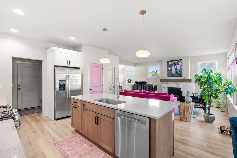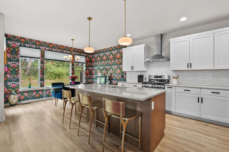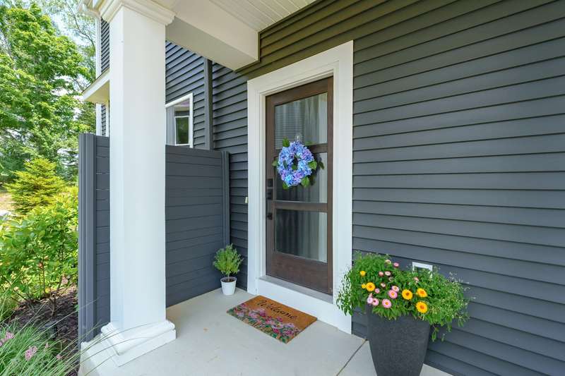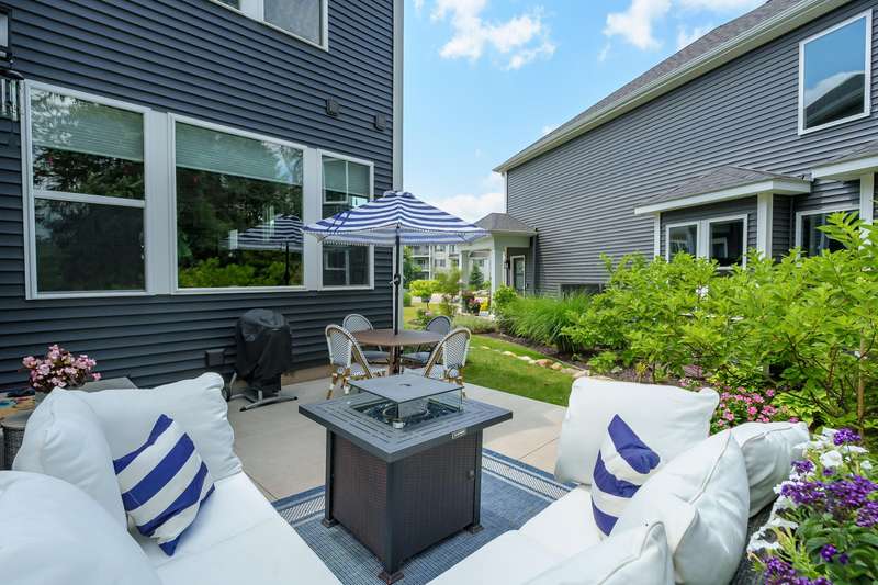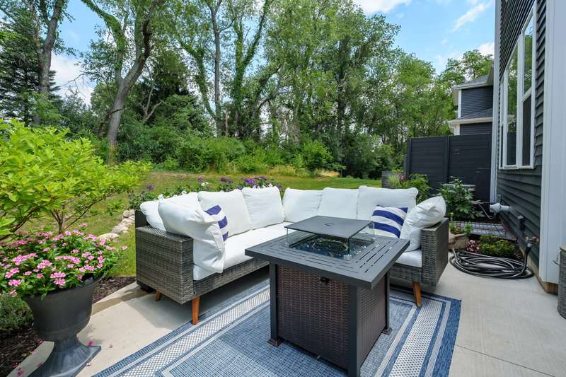 Stunning End-Unit Condo with Exceptional Outdoor Space & Designer Finishes. Welcome to this beautifully appointed end-unit condo, nestled amid lush, professionally landscaped gardens and featuring a private patio-perfect for relaxing or entertaining in serene surroundings. Inside, the open-concept layout showcases a luxury kitchen with sleek quartz countertops, a massive center island that defines the heart of the home, and abundant cabinetry for both form and function. Sunlight pours through the light-filled windows, enhancing the bright and airy atmosphere throughout the main living area, where a cozy gas fireplace adds warmth and charm. The well-appointed primary suite offers a tranquil retreat, while the convenient second-floor laundry adds everyday practicality. Residents enjoy the outdoor pool, lush landscaping and access to trails across the street. Convenient to all the amenities of the westside of Kalamazoo, Western Michigan University, Kalamazoo College and the terrific restaurants and shopping in downtown Kalamazoo.