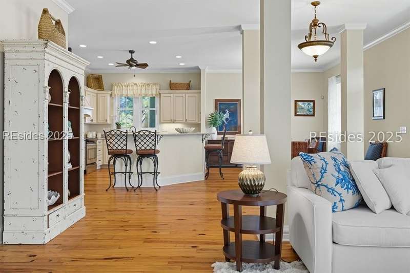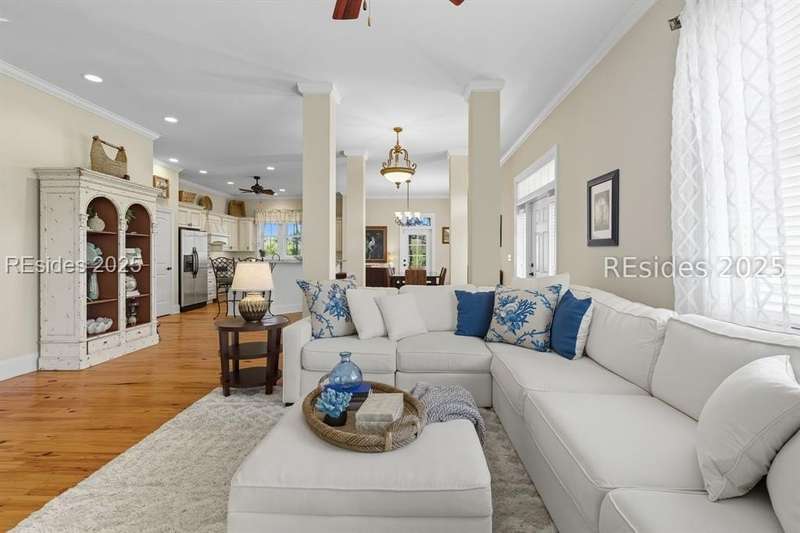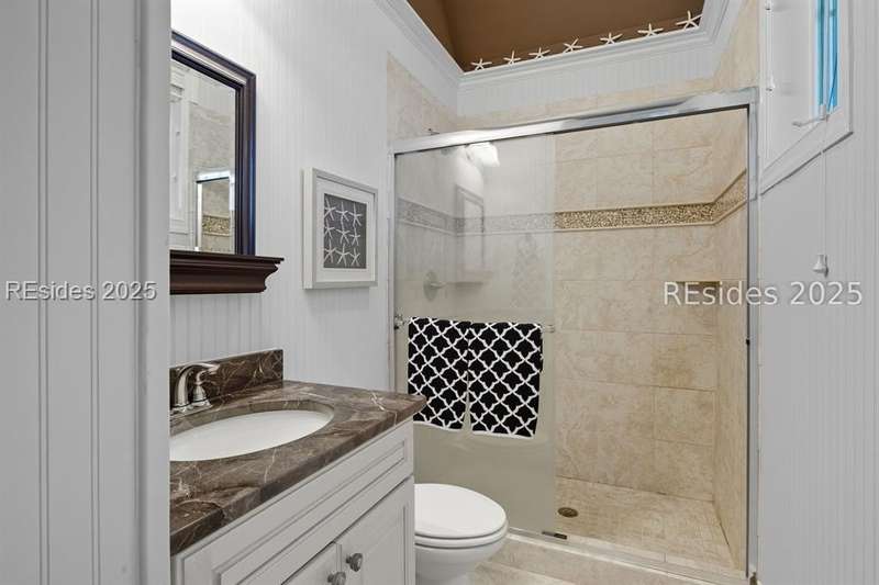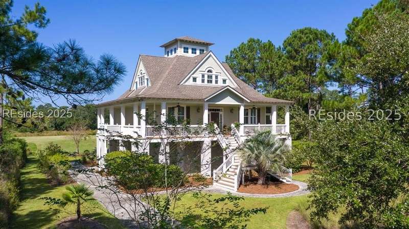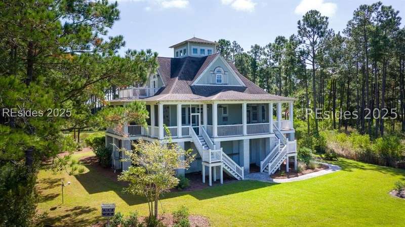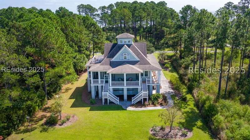 Discover a rare ocean-view retreat in the spectacular and secluded Bloody Point community at the south end of historic Daufuskie Island in Beaufort County, South Carolina. Elevated and thoughtfully designed, this 2,649 sq ft 4BR/4BA residence captures the essence of Lowcountry coastal living with sweeping views, timeless details, Bloody Point beach access, and modern comfort.Step inside to gleaming hardwood floors and an open floor plan that seamlessly combines the living, dining, and remodeled kitchen. A picturesque staircase serves as a centerpiece, while natural light floods the space from all directions. The home offers four ensuite bedrooms--two on the main level and two upstairs--ideal for hosting guests and providing flexible living arrangements. At the very top, a remarkable glassed-in crows nest offers unmatched panoramic views of the Atlantic Ocean and the pristine Bloody Point shoreline.The primary suite is a true sanctuary, featuring an oversized spa-like bathroom with a uniquely tiled shower, an enormous walk-in closet, private stackable laundry, and a personal balcony with breathtaking ocean and nature views. Outdoor living is maximized with porches surrounding the home, both screened and open-air, perfect for enjoying sunrises, sea breezes, and the sights and sounds of native wildlife or the crashing surf just feet away. Practical details enhance the lifestyle: abundant storage and parking underneath the home, plus a convenient outdoor shower for beach days. Even more rare, the sale includes the adjoining lot, guaranteeing exclusive privacy and peace of mind for years to come. Bloody Point POA is known for its affordable dues and its unique, private, and historic setting. Memberships in the private Daufuskie community of Haig Point are available to purchase--these memberships include access to Haig Point amenities such as golf, equestrian, tennis, pickleball, restaurants, and Haig Point's ferry service that provides mainland access 24-7. With expansive coastal views, preserved natural beauty, and an abundance of native wildlife, this community offers a serene and exclusive lifestyle unlike any other.This property is more than a home...it is a retreat, a sanctuary, and a chance to own a truly special piece of Daufuskie Island's coast.