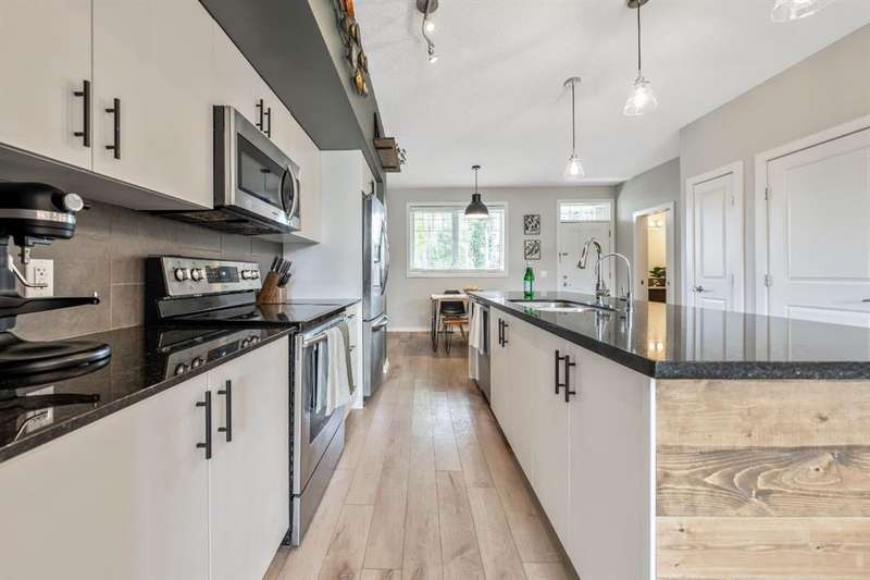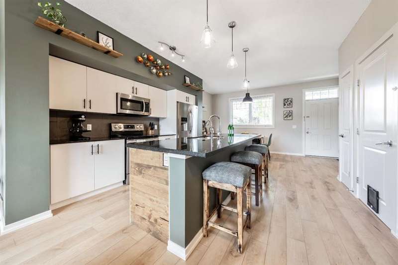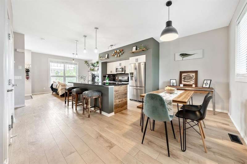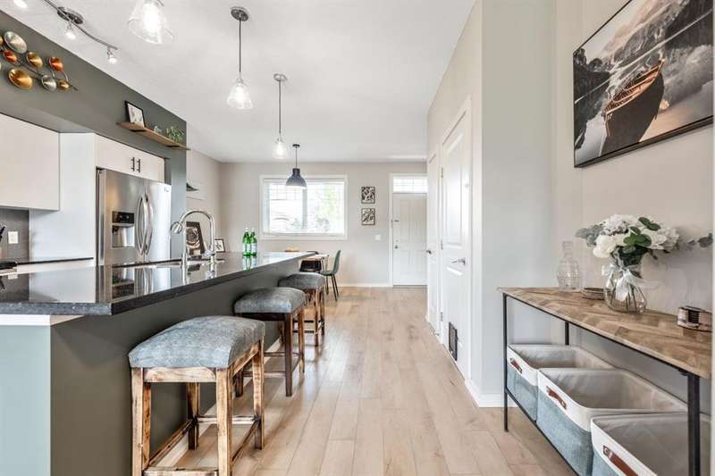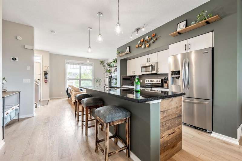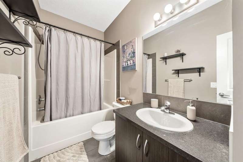 Welcome to this immaculate 3-bedroom, 2.5-bathroom home with over 1700 ft2 of developed living space, located in the highly desirable community of Cranston. This pet-friendly, beautifully maintained property combines modern updates with thoughtful design, creating the perfect home for families or professionals. Step inside to discover newly installed luxury vinyl plank flooring on the main level, fresh paint, and updated lighting fixtures that add a contemporary touch. The open-concept main floor features 9-foot ceilings and a spacious kitchen with granite countertops and stainless steel appliances, perfect for both cooking and entertaining. The upper level boasts two generously sized bedrooms, while the fully developed basement includes an additional bedroom—ideal for guests, a home office, or a private retreat. A new hot water tank in 2024 and a water filtration system adds extra comfort and convenience. Enjoy the west-facing exposure that fills the home with natural light, and take advantage of front driveway parking for added ease. Located just minutes from shopping, dining, parks, and pathways, this home is also within close proximity to both Catholic and Public schools—making it a great choice for families. Don’t miss your opportunity to live in one of Calgary’s most desirable neighborhoods!