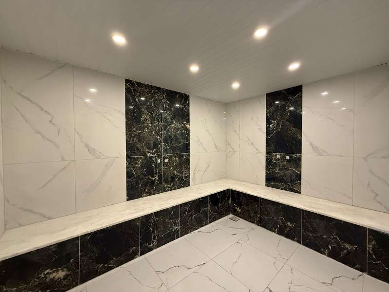 The flats in the project have features such as ceramic floors, suspended ceilings, hidden LED lighting, bathroom and kitchen cabinets, bathroom and kitchen countertops, and electricity-water-air conditioning installations.