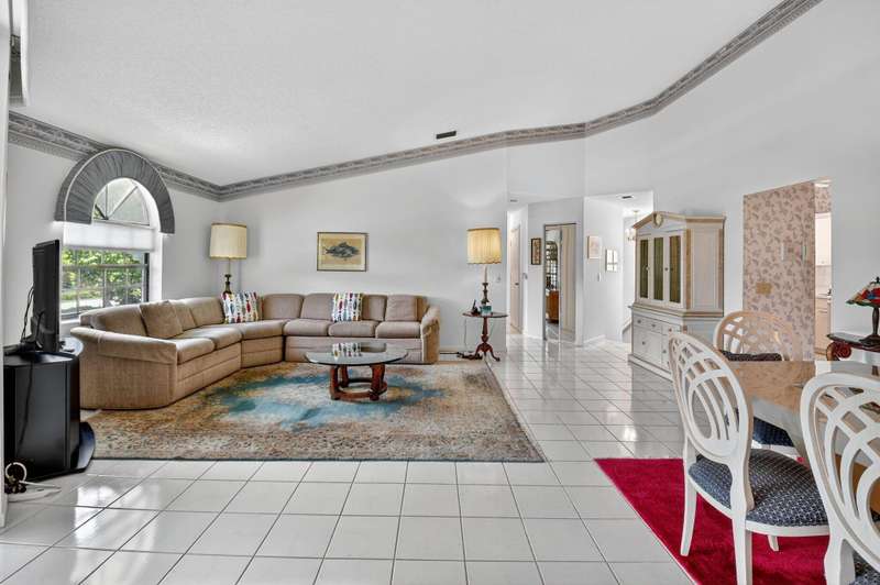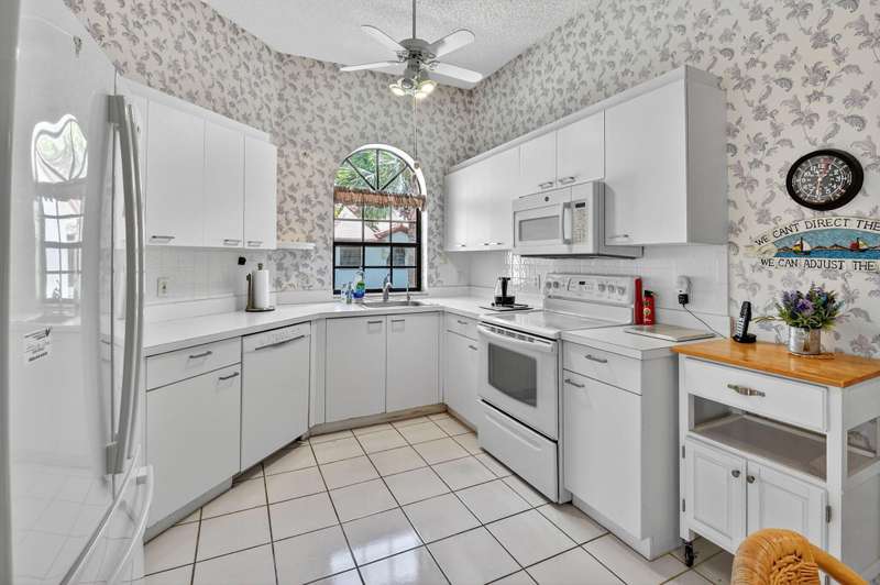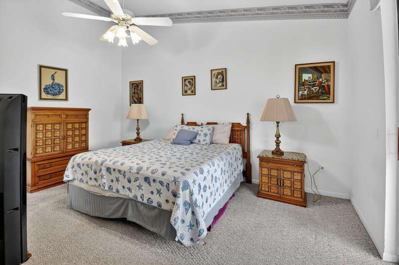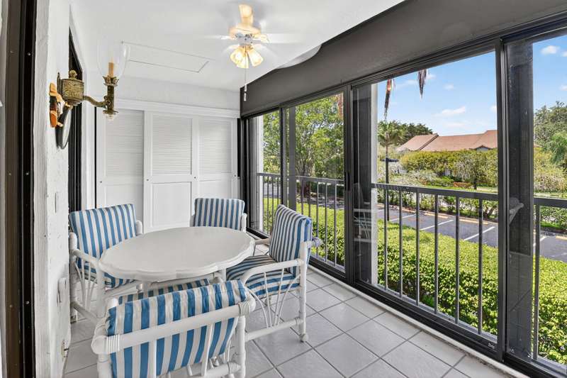 This two bedroom plus den, two full bath condo offers care-free, resort-style living. It is just a short walk from the vibrant 20,000 square foot clubhouse and an array of exceptional amenities. Access your upstairs living space using your private staircase or exclusive elevator--perfect for accessibility and ease of entry. The open, split floor plan ensures privacy and flow, with soaring ceilings creating an airy, inviting ambiance throughout. The spacious eat-in kitchen has abundant storage and a generous pantry for all your essentials. The master suite features a custom-fitted walk-in closet and a large bathroom complete with dual sinks, a vanity, and both a handicap accessible shower and a regular walk-in shower--designed to cater to every need.