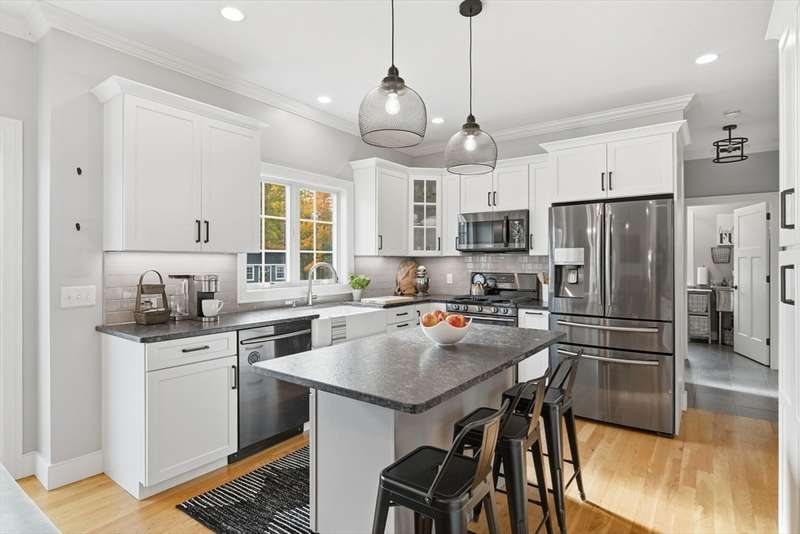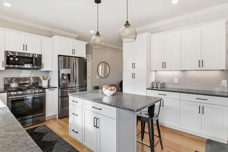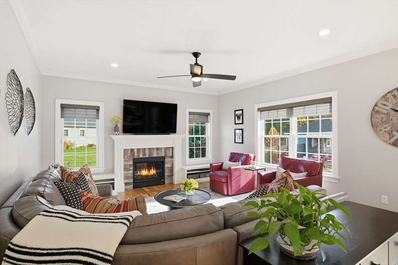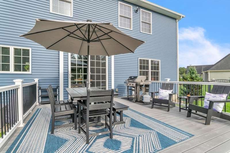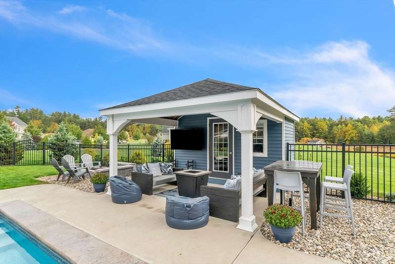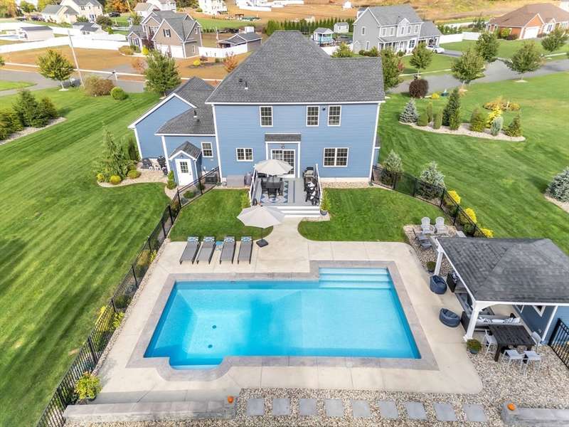 Tucked at the edge of the woods on over an acre of landscaped beauty, this 4-bedroom, 2.5-bath colonial offers the perfect blend of classic charm and modern ease. A heated in-ground pool anchors the backyard oasis complete with sitting wall, fire pit, and fully outfitted pool house with half bath, fridge, and changing area. Inside, 9 ceilings, hardwood floors, and abundant natural light create an open, airy flow. The cook s kitchen features a leathered granite island, stainless appliances, and easy access to the composite deck overlooking the private grounds. In the living room, built-ins and window seats frame a cozy gas fireplace. Upstairs, the main suite impresses with a tray ceiling, double vanity, and walk-in closet. A thoughtful mudroom and immaculate garage add everyday function. Just eight years young, this serene retreat offers timeless design, effortless entertaining, and proximity to every convenience.
