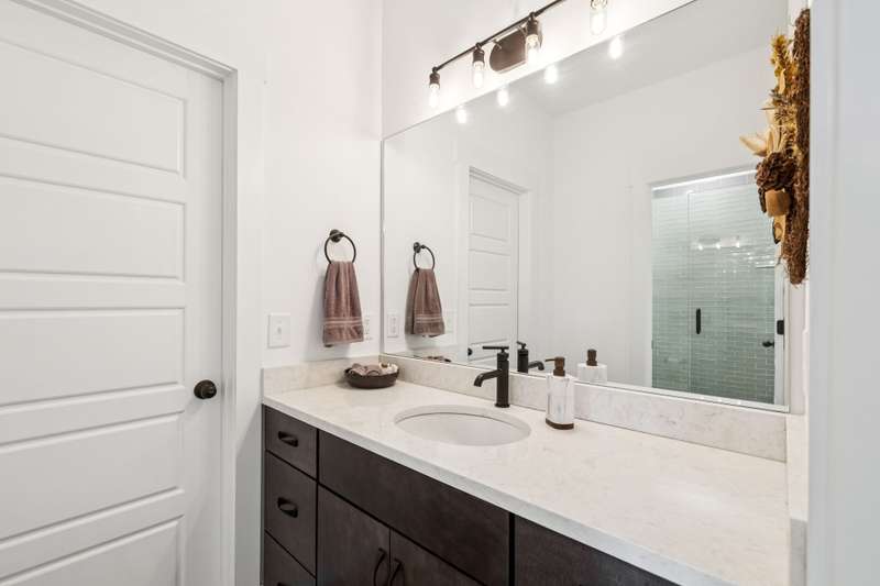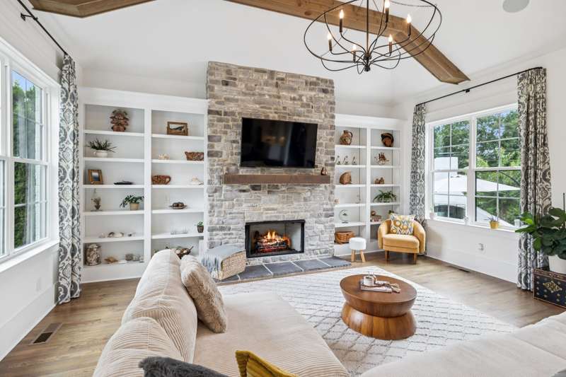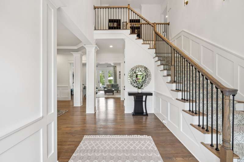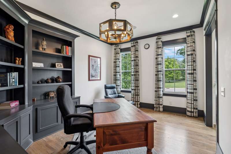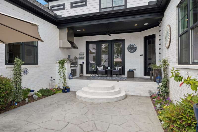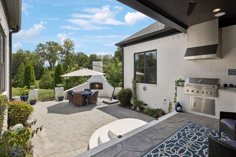 Former Award-Winning "Westchester" Model Home by Turnberry Homes, occupied less than 2 years, is nestled on a private, flat 0.56-acre, pool-sized lot, features over-the-top amenities throughout. From the outdoor living space to the interior details, this residence is perfect for both everyday living & entertaining. Inside, enjoy tall ceilings, 8-foot doors, tall baseboards, crown molding, & wainscoting. Step outside to your private oasis, featuring a covered porch & beautiful courtyard w/ wood-burning fireplace. Front and backyard are fully landscaped & irrigated. The covered porch is complemented by stamped concrete terrace, & outdoor kitchen equipped w/grill, refrigerator, & speakers. Front yard uplighting adds a warm glow. Gourmet kitchen is equipped w/upgraded cabinetry, quartz counters, double wall oven, built-in microwave, & walk-in pantry. Formal dining room showcases wainscoting & flows into the butler's serving bar, complete w/wine storage & wine chiller. The elegant living room boasts a coffered ceiling w/ wood beams, marble surround gas fireplace, & custom built-ins. The great room is equally impressive w/vaulted ceilings, wooden beams, a stone fireplace, & more built-ins. The main-level study w/built-ins, a closet, & full bath, can serve as a 5th bedroom. The primary bedroom is also on the main-level & compliments the primary bath w/ 2 walk-in closets, car wash shower & soaking tub. 3 generously-sized bedrooms upstairs have walk-in closets & ensuites. The massive bonus/media room with large bar features leathered granite, wine chiller, ice maker, & surround sound. Functional & Practical Details include a private friend's entrance w/ key pad lock, large drop zone w/storage bins, epoxy garage floors, custom window coverings, laundry room w/built-in sink, upper & lower cabinets, & shelves, fire sprinkler system, security system, double staircase, & attic storage. Located in highly sought after Williamson County School District, in premier Neighborhood.