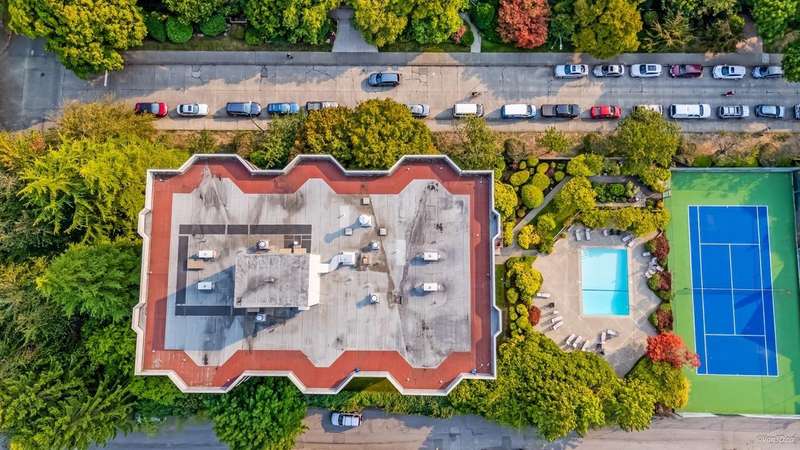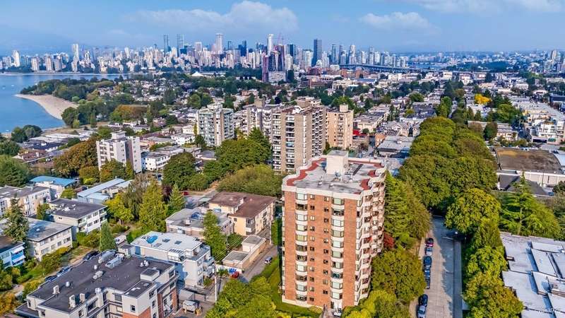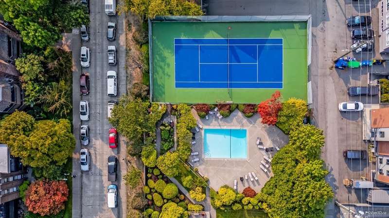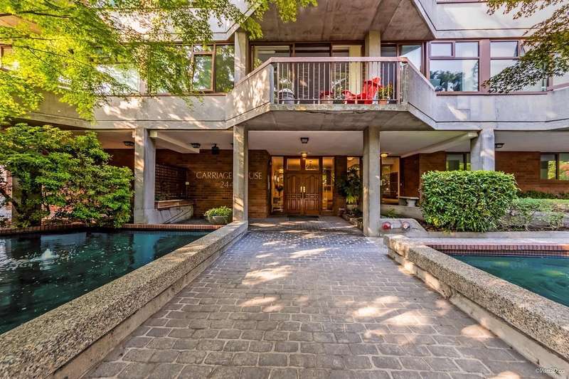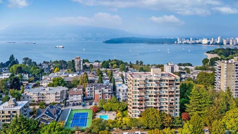 Welcome to Carriage House - the best, exclusive strata concrete highrise north of West 4th, in an unbeatable Kits location - located on nearly 3/4 of a City block (approx 350' frontage) with all the shopping & restaurants on West 4th just a block away. Amenities include an amazing outdoor swimming pool, tennis court and a billiards room. Building is meticulously maintained with updated roof, plumbing and both elevators. Resort living in the heart of the City, with sweeping views of the city, water and mountains from this cool and bright north-facing suite. Kits Beach is just blocks away, and a short stroll to Granville Island. This lovely view suite is easy to show and is ready for immediate occupancy. Sorry, no pets. Open house Sunday, Sept 28th from 2 to 3 pm