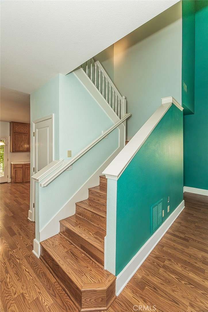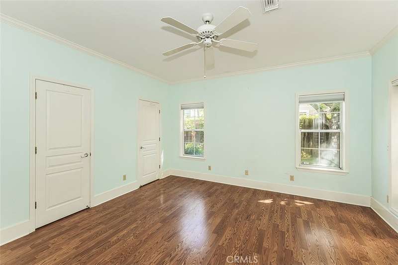 You have arrived at this very desirable Northeast Fresno community. Enjoy this lovely 4 bedrooms and 2 bathrooms home with an excellent floor plan. The spacious great room has high ceilings and a wood insert fireplace for your relaxation and comfort. The room is accented with plantation shutters and ceiling fan plus laminate wood flooring in many other interior rooms. The kitchen is complete with a center island, double ovens, gas cooktop, microwave and convenient pantry. The large primary bedroom and very large main bathroom is downstairs with French doors to the rear yard. The bathroom has been beautifully remodeled with quartz countertops and double sinks plus a lovely rain shower. The upstairs living space features a loft balcony area, builtin bookcases, and 3 very large bedrooms. The adjacent bathroom has double sinks and another door that opens to a very handy extra storage attic. In addition you will be impressed with all the storage cabinets inside and in the garage too. Relax and entertain in the well designed rear yard with a patio, synthetic grass and drip irrigation. This delightful home is near shopping, dining and Clovis Unified schools.