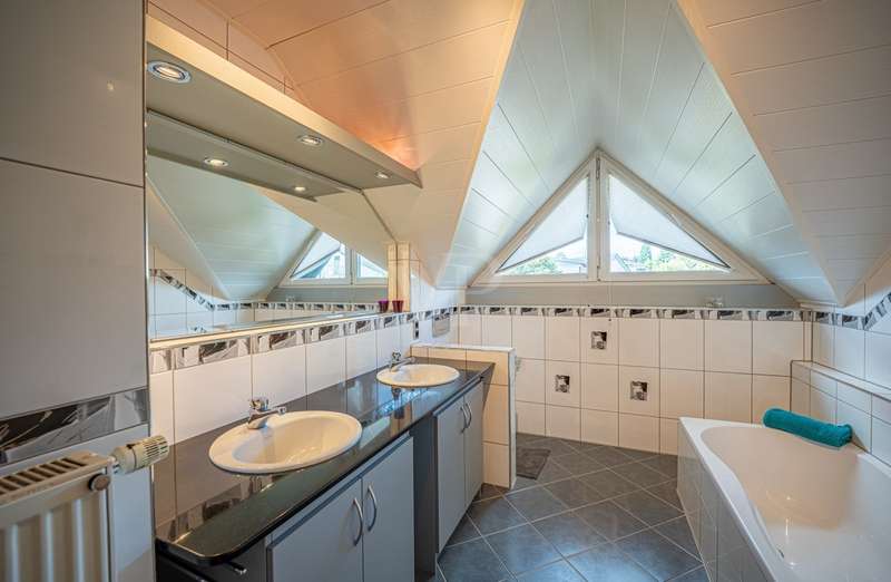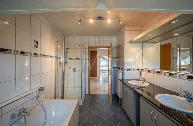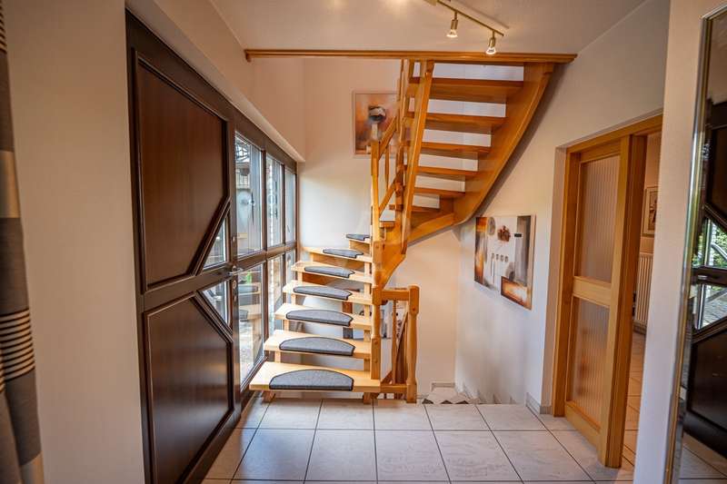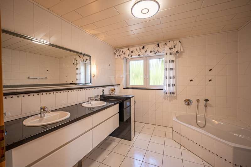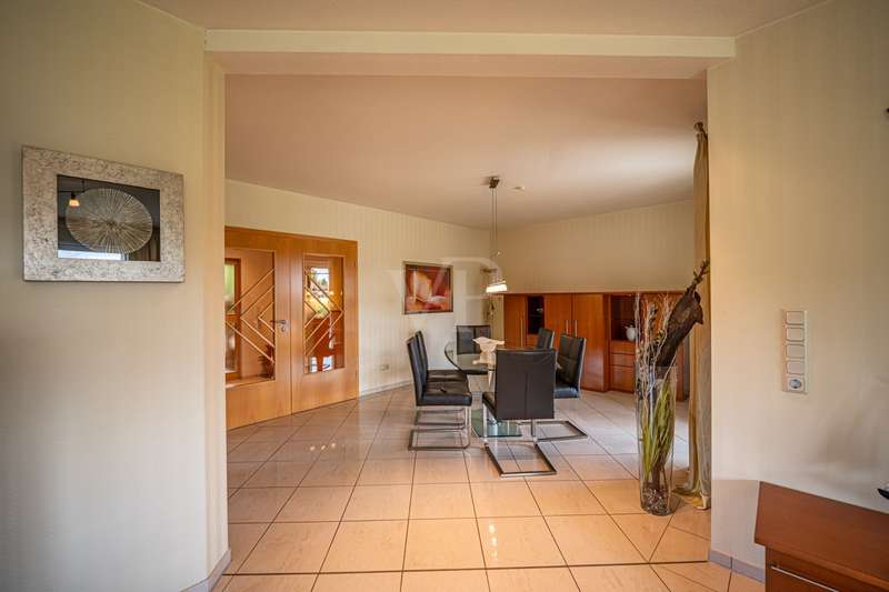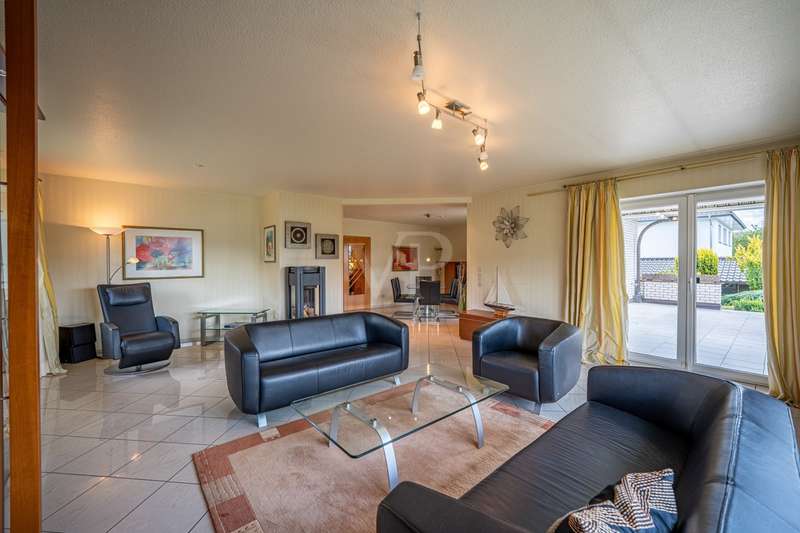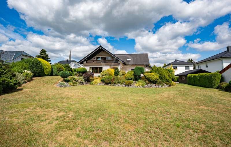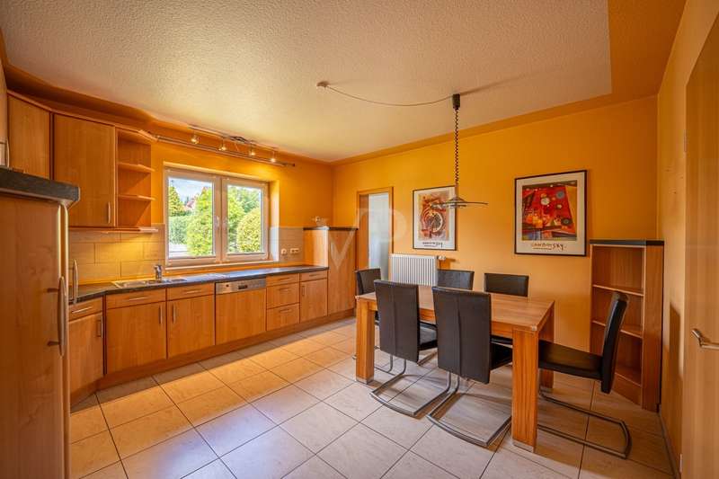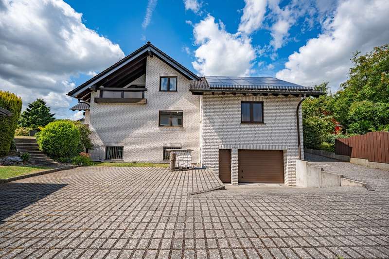 Welcome to Wallmerod - in a sought-after, absolutely quiet and upmarket residential area, we present this spacious, solidly built detached/two-family house with exceptional potential. Built in 1998 and clinkered on the outside, the house impresses with its quality, comfort and versatile usage options - ideal for families, multi-generational living or even the self-employed. First floor - living on one level: With approx. 150 m², the first floor offers everything you need for comfortable living: - Spacious eat-in kitchen with plenty of room to spend time together - Light-flooded living room with underfloor heating and cozy fireplace - High-quality bathroom with bathtub and shower - Living on one level - also ideal for older people - Direct, ground-level access to the spacious terrace with awning and wonderful view of the extensive property, which is laid out on two levels Upper floor - granny apartment or separate area; ideal for a large family, guests or for renting out. Around 100 m² await you: - Spacious living area with wood-burning stove and balcony and impressive views over the property - Large eat-in kitchen with fitted kitchen and access to the balcony - 2 bright bedrooms - Daylight bathroom The basement offers a separate wellness area with sauna, laundry room and plenty of storage space. Two further rooms can be used in a variety of ways as living, work or hobby rooms. The basement offers direct access to the garage - convenient and weather-protected The plot - green, spacious, freedom of design: The approx. 1,600 m² plot can be developed separately and additionally. Whether a garden paradise, an extension or a new development - there are many options open to you here. This property combines high-quality construction, a well thought-out room layout and spacious areas in one of the best residential areas of Wallmerod. It offers families, the self-employed and investors alike an ideal home with prospects. Additional parking spaces and garages for up to 5 cars round off this attractive property.