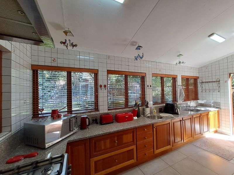 The well-manicured garden leads you to the entrance of this elegant home. Neutral tones of the interior living spaces complement the various rooms in the home. The entrance leads into the open plan lounge that has a cosy fireplace. At the back of the lounge a double door swings open to the delightful, extensive patio where you can entertain at your heats?ÇÖ delight, overlooking the sparkling pool and the manicured garden. The borehole ensures the garden looks luscious all through the year. To the left you will find the well-planned kitchen that has a separate family living space with a sociable breakfast nook. The spacious kitchen has a gas stove, granite tops, ample cupboard space made of good quality cherry wood and the dining room fits in neatly on the one side. As you go through a door to the one wing of the house, you will find a guest toilet, a very large study, that can also be used as a pyjama lounge, and the two children?ÇÖs bedrooms that share a bathroom with a large shower. The second wing of the house hosts the luxurious, sunny master suite with a stylish en-suite bathroom with a beautiful bath and walk- in shower. The master bedroom has a door opening to the pool and entertainment area completing the ground floor. Upstairs you will find a large entertainment area with its own guest toilet. For the extended family, there is a very large separate flat with a large lounge and open plan fully equipped kitchen. The separate 4th bedroom is located here with lots of cupboards, and it has an en-suite bathroom. As a bonus there is staff accommodation with a bathroom, a borehole and irrigation in the garden, a double garage and more safe parking inside the erf. Well maintained and in immaculate condition ?Çô Just move in and work from home. This home truly facilitates all one?ÇÖs requirements. The Wapadrand Security Village is a boomed off area that offers excellent 24hr security, with well-established indigenous trees and a rich bird life. It has its own cr?¿che. Popular shopping centres are in proximity as well as Life Wilgers Hospital and access to several main roads. This could be your next home, don?ÇÖt miss out, call us for an exclusive viewing.