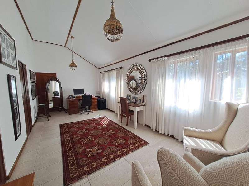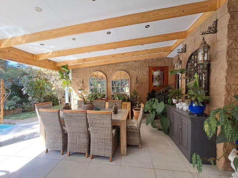The well-manicured garden leads you to the entrance of this elegant home. Neutral tones of the interior living spaces complement the various rooms in the home. The entrance leads into the open plan lounge that has a cosy fireplace. At the back of the lounge a double door swings open to the delightful, extensive patio where you can entertain at your heats?ÇÖ delight, overlooking the sparkling pool and the manicured garden. The borehole ensures the garden looks luscious all through the year. To the left you will find the well-planned kitchen that has a separate family living space with a sociable breakfast nook. The kitchen has a gas stove, granite tops, ample cupboard space made of good quality cherry wood and the dining room fits in neatly on the one side. As you go through a door to the one wing of the house, you will find a guest toilet, a very large study, that can also be used as a pyjama lounge, and the two children?ÇÖs bedrooms that share a bathroom with a large shower. The second wing of the house hosts the luxurious, sunny master suite with a stylish en-suite bathroom with a beautiful bath and walk- in shower. The master bedroom has a door opening to the pool and entertainment area completing the ground floor. Upstairs you will find a large entertainment area with its own guest toilet. For the extended family, there is a very large separate flat with a large lounge and open plan fully equipped kitchen. The separate 4th bedroom is located here with lots of cupboards, and it has an en-suite bathroom. As a bonus there is staff accommodation with a bathroom, a borehole and irrigation in the garden, a double garage and more safe parking inside the erf. Well maintained and in immaculate condition ?Çô Just move in and work from home. This home truly facilitates all one?ÇÖs requirements. The Wapadrand Security Village is a boomed off area that offers excellent 24hr security, with well-established indigenous trees and a rich bird life. It has its own cr?¿che. Popular shopping centres are in proximity as well as Life Wilgers Hospital and access to several main roads. This could be your next home, don?ÇÖt miss out, call us for an exclusive viewing.