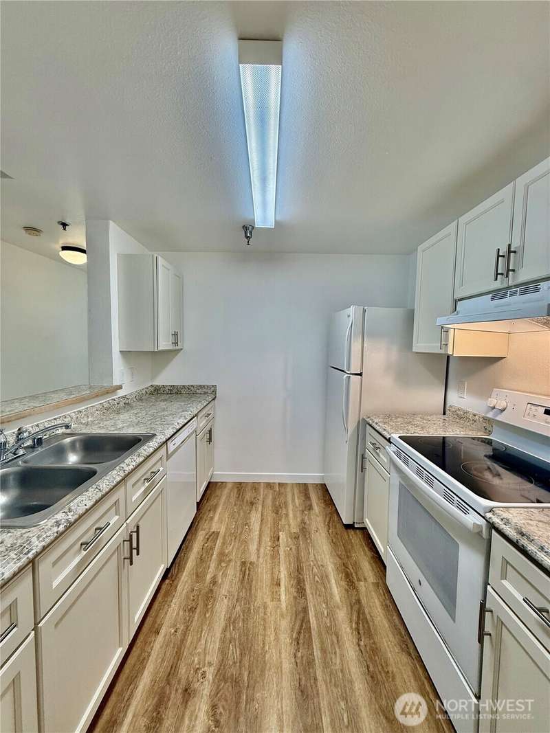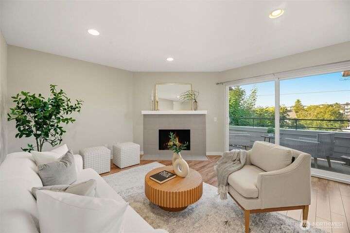Charming Top Floor 2BD/1.75BA unit in Renton Ridge offering peaceful greenbelt. Open living spaces, spacious dining area, and large living room with fireplace and access to balcony. Primary suite with walk-in closet. New flooring and fresh paint. Updated Kitchen. Community amenities: seasonal pool, hot tub, clubhouse, fitness center, basketball court, BBQ area, and playground. One parking space and HOA dues cover: W/S/G. No rental cap or special assessments. Prime location near Lake WA, Coulon State Park, and Boeing, and it has easy access to i-405 and The Landing.