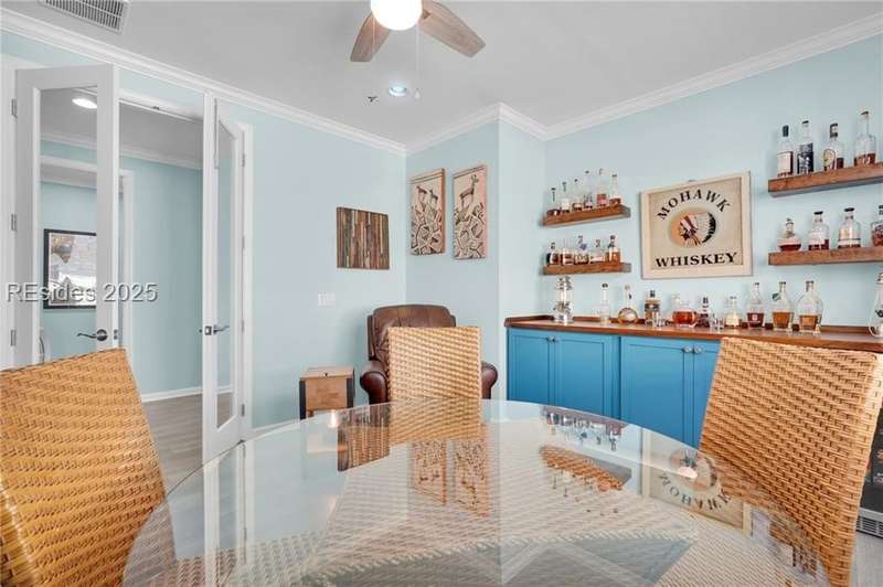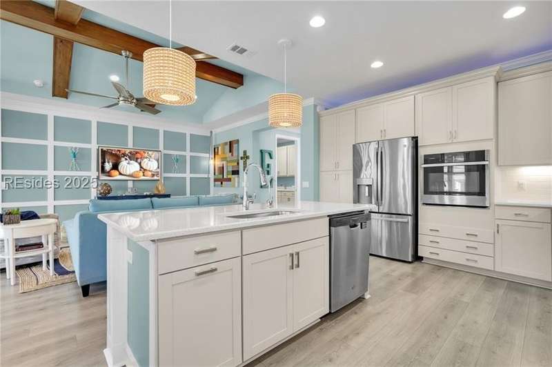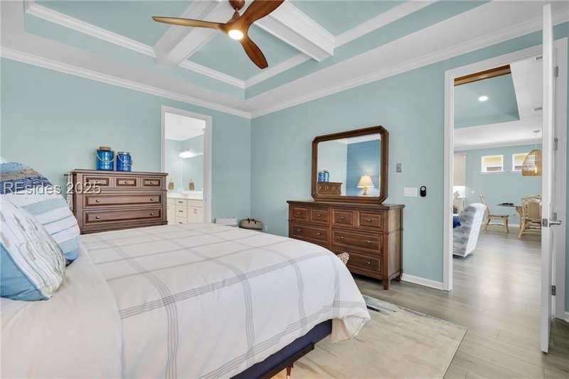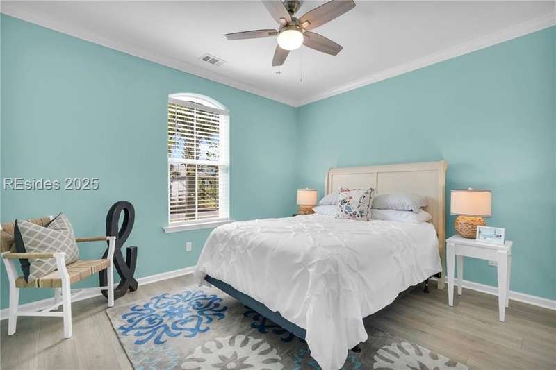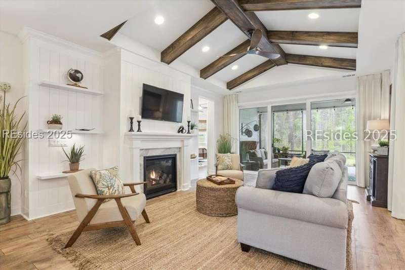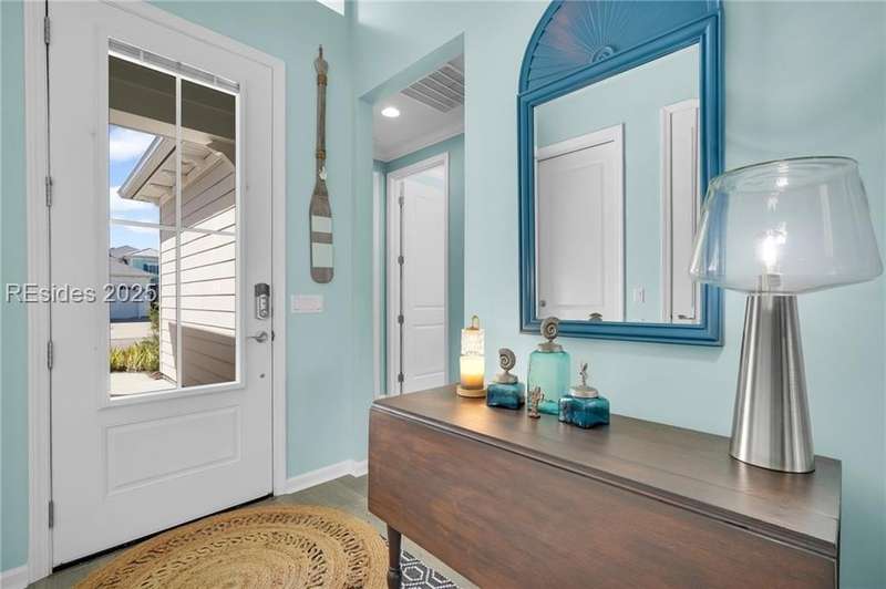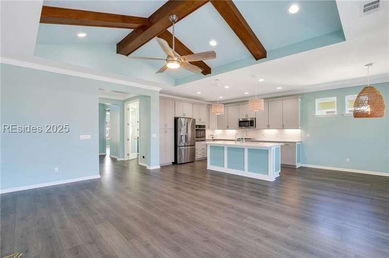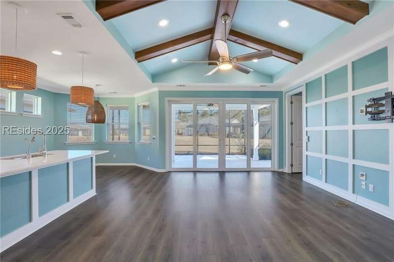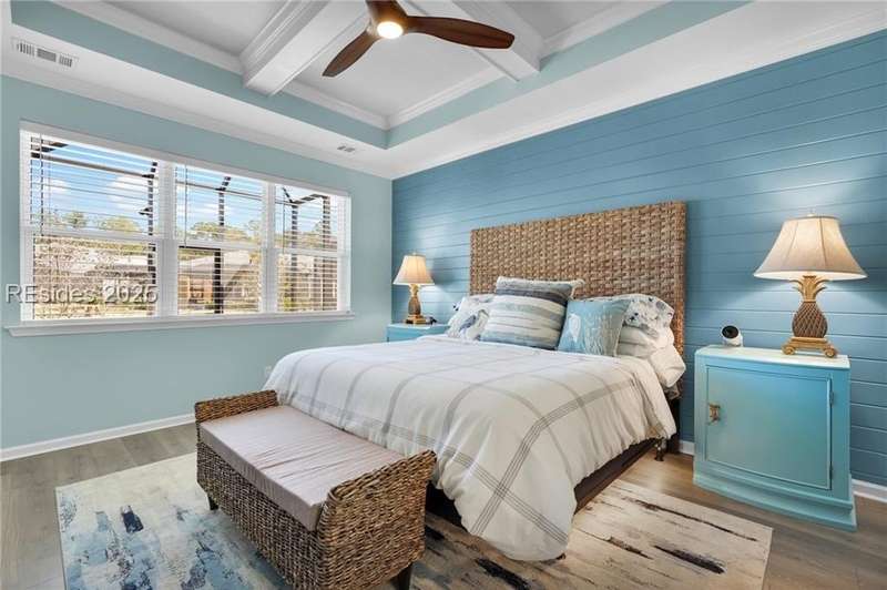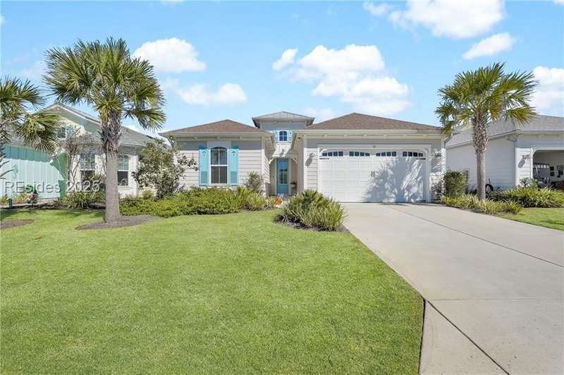 Highly desired Coconut Floor Plan in the One of a Kind Latitude Margaritaville Hilton Head! Stop dreaming & start living your Best Life in a vibrant community that offers a fun and relaxed lifestyle that feels like you're on vacation all the time! Don't believe me? Check out all the amenities and activities on the Margaritaville website - too many to mention! Your friends will be jealous when they see where you live & in this fabulous upgraded home in a phase close to the amenities & no construction! This home has been loved & very well maintained with added benefit of a whole house water filtration system & brand new thermostat. Everything is already done for you to move in today! Starting at the front door & entry with a retractable screen door, then step inside to an island vibe shiplap ceiling and ratan light fixture. Look around at the whole house crown molding and luxury vinyl plank floor throughout. 8' doors, quartz countertops, 42" kitchen cabinets with mood lights mounted above, and all stainless steel kitchen appliances included! Hobby room is equipped with double glass doors, dry bar with beverage center, floating shelves, & shiplap wall. Great room welcomes your guests with beams on ceiling, board & batten feature wall & all stylish lighting will make you say wow! More features include 2 crossing beams on ceiling in primary bedroom with custom shiplap wall, crown molding, custom built closet organizers, framed mirror, and additional drawers. The spacious bathroom and shower will make you feel like you're living in luxury! Don't forget to note the extended screened (and additional space for hot tub already wired) in lanai with painted ceiling, outdoor string lights, tv & mount, epoxy floor and outdoor flood light. Partially floored pull down attic space puts the icing on the cake! Sellers have even had a Full Home Inspection for Buyers Peace of Mind!