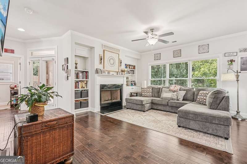 Fantastic Opportunity to Live in the Sought After Hawkins Place Subdivision. This 5BR/3.5 Bath Home is well Appointed with Numerous Upgrades, Bonus Room, Large Fenced Backyard, Covered Patio for Relaxing, Oversized Deck for Entertaining and Sits on a Private Culdesac Lot! This Bright Open Floorplan Has Gorgeous Wide Plank Hardwood Floors Throughout Main. Chef's Kitchen w/Custom White Cabinets, Granite Countertops, Tiled Backsplash, All Stainless Steel Appliances, Built-in Microwave, Dual Ovens, Separate Gas Cooktop, Island, Breakfast Bar, Pendant Lighting, Walk-in Pantry and Breakfast Area w/Chandelier. Dining Room w/Tray Ceiling, Wainscoting, Chandelier and Butler's Pantry. Separate Den/Office Area on Main w/Crown Molding. Family Room with Custom Fireplace, Ceiling Fan and Wonderful Backyard Views. Covered Patio is Perfect for Reading and Relaxing or Entertain on the Oversized Deck Overlooking the Private Fenced Backyard. Large Master Suite Has Tray Ceiling and Fan. Master Spa Has Gorgeous Tiled Floor, Custom Dual Vanity w/Quartz Countertops, Custom Fixtures, Oversized Garden Tub, Subway Tiled Shower and Huge Walk-in Master Closet. Huge Bonus Room Up Makes a Wonderful Rec/Media Room or Potential 5th Bedroom! 3 Spacious Secondary Bedrooms Up, One w/Private Bath and Two Others That Share a Jack-n-Jill! This Home Has Lots of Character and Curbside Appeal! Buyer will Receive a $3,500 Lender Credit with preferred lender JT Trial-Certainty Home Lending