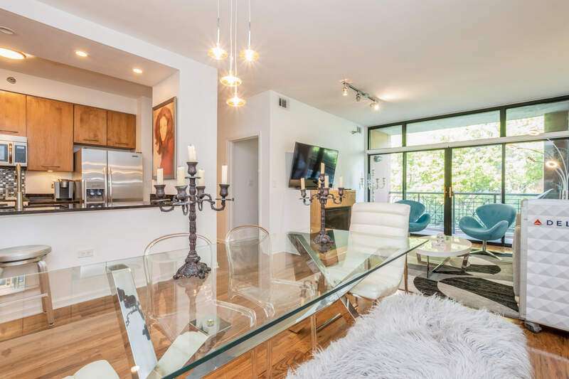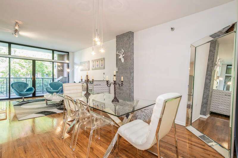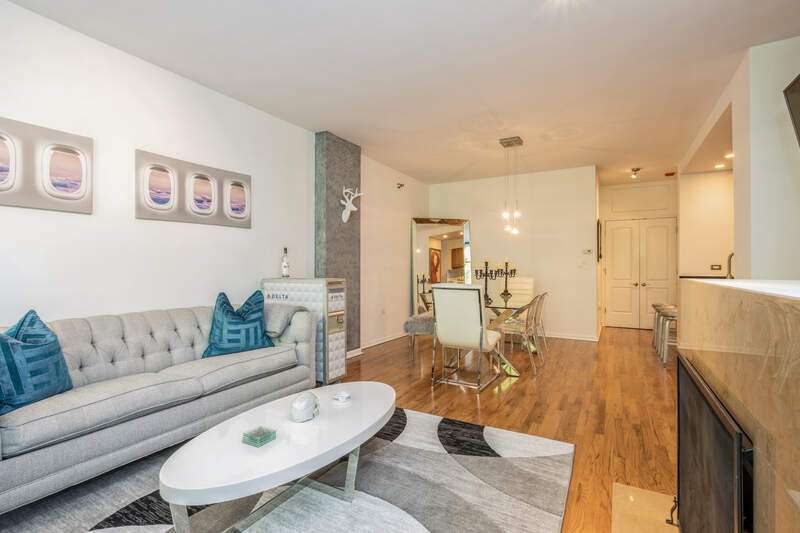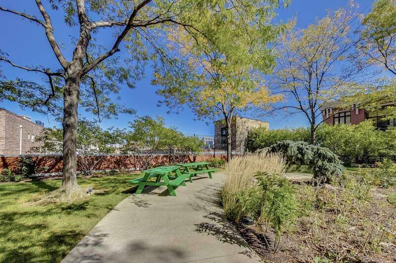 EAST LAKEVIEW - PLAZA32 - PRIME LOCATION. This beautiful home overlooks the tree-lined park and does not face Halsted. Stunning, renovated one bedroom, one bath with a balcony and heated garage parking space #126 is included in a boutique elevator building with 24-hour door staff. Beautiful kitchen with granite countertops, stainless steel appliances, and 42" Solid wood cabinetry with pull out shelves and soft close drawers. The spacious bathroom features porcelain heated tile floors, soaking tub/shower, and a custom cherry wood vanity w/marble top and an oversized under mount sink. Beautiful living room with designer lighting, marble gas fireplace, custom window treatments and wire for sound. Walk-in laundry room with front load washer/dryer and storage shelving. The building has a beautiful large common landscaped park. Assessments include nearly everything: All gas (heat & cooking), water (hot & cold), ASTOUND/RCN Digital TV with HBO MAX, and two TIVO HD DVRs, and high-speed internet/Wi-Fi included!! Storage cage included. Dog and cat friendly, building has a private dog run/park. Close to the lakefront, Target, Whole Foods, Mariano's, CTA-Belmont stop, Starbucks, shopping, & restaurants. Extremely well-managed building.