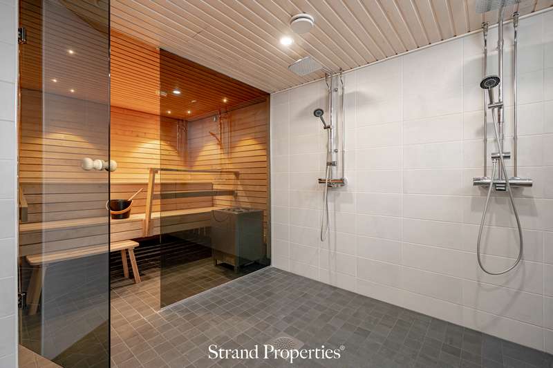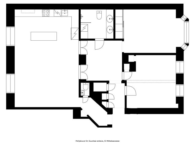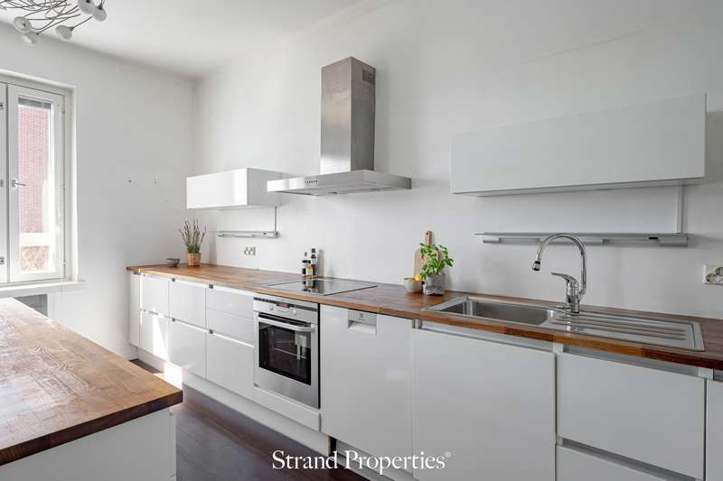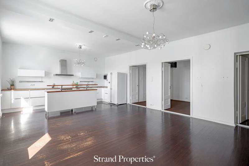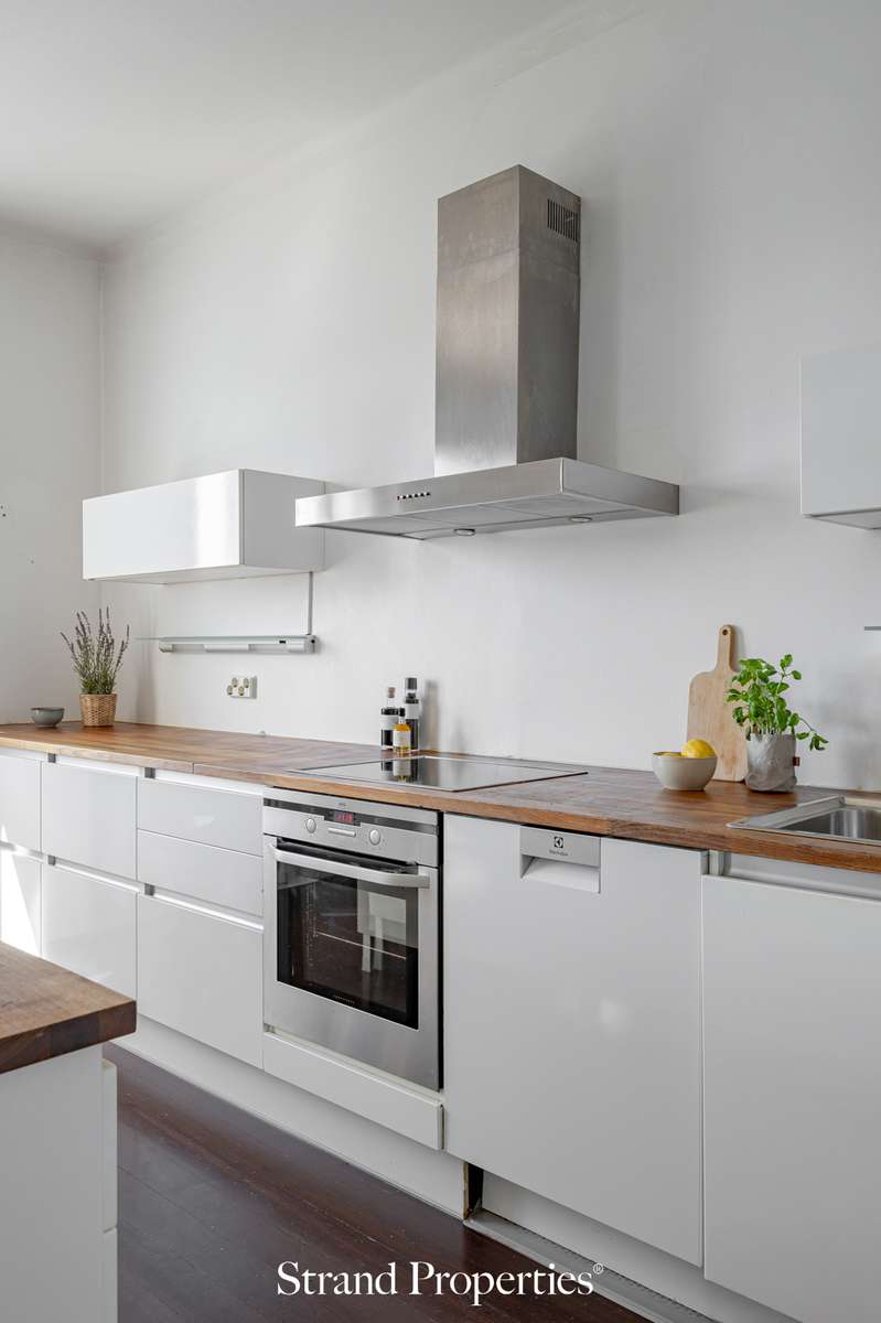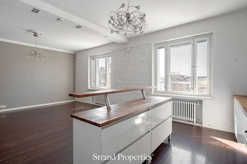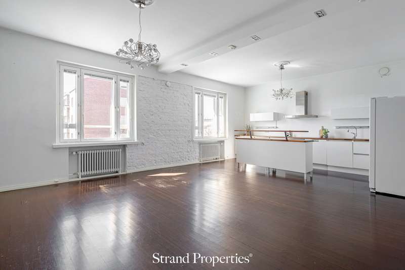 Valoisa ja avara läpitalon huoneisto huippusijainnilla Tervetuloa ihastumaan tähän 5. kerroksen asuntoon, jonka sisustuksessa uusi ja vanha yhdistyvät luontevasti. Kaunis, tummaksi petsattu lautalattia, syvät ikkunalaudat ja alkuperäiset väliovet luovat kodikkaan tunnelman ja selkeälinjainen Puustellin avokeittiö saarekkeineen sekä olohuoneen tiilinen tehosteseinä tuovat tilaan modernia twistiä. Huoneisto on läpikäynyt mittavan remontin vuonna 2007-08, jolloin mm. keittiö siirrettiin olohuoneen yhteyteen ja kylpyhuonetta laajennettiin. Makuuhuoneet sijaitsevat rauhallisen sisäpihan puolella ja päämakuuhuoneeseen luo tunnelmaa kaunis erkkeri-ikkuna ja tilava, seinän levyinen liukuovikaapisto tarjoaa paljon säilytystilaa. Pienempi makuuhuoneista on palautettavissa kahdeksi erilliseksi huoneeksi väliseinällä - tilaan on jo valmiina kaksi oviaukkoa. Kylpyhuoneessa on kaksi pesuallasta ja runsaasti tilaa hoitaa aamuaskareita sekä pyykkihuoltoa.