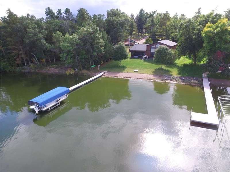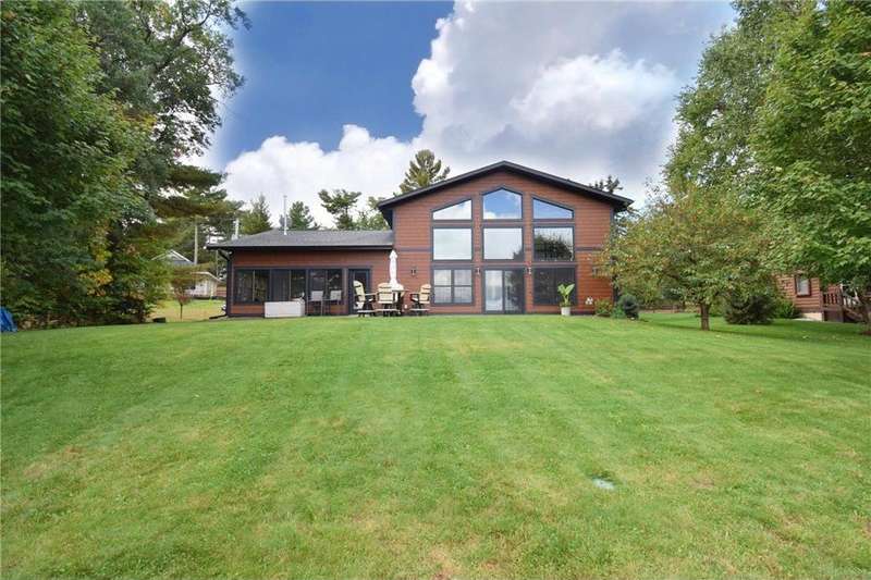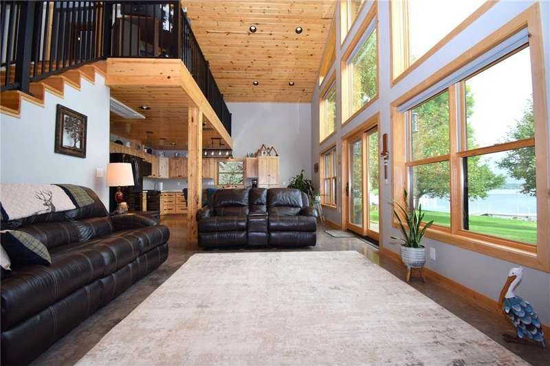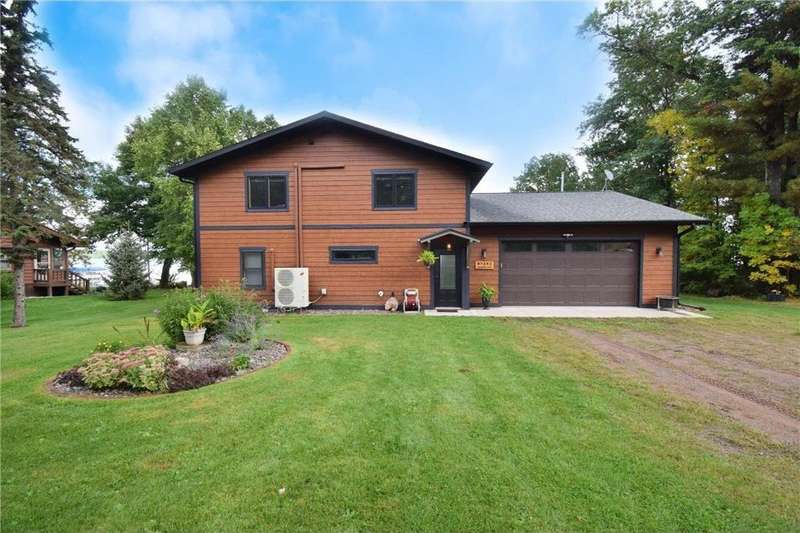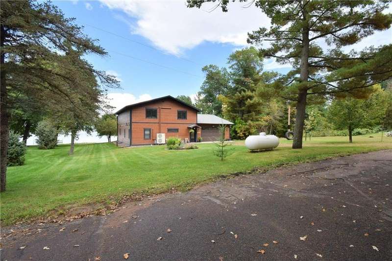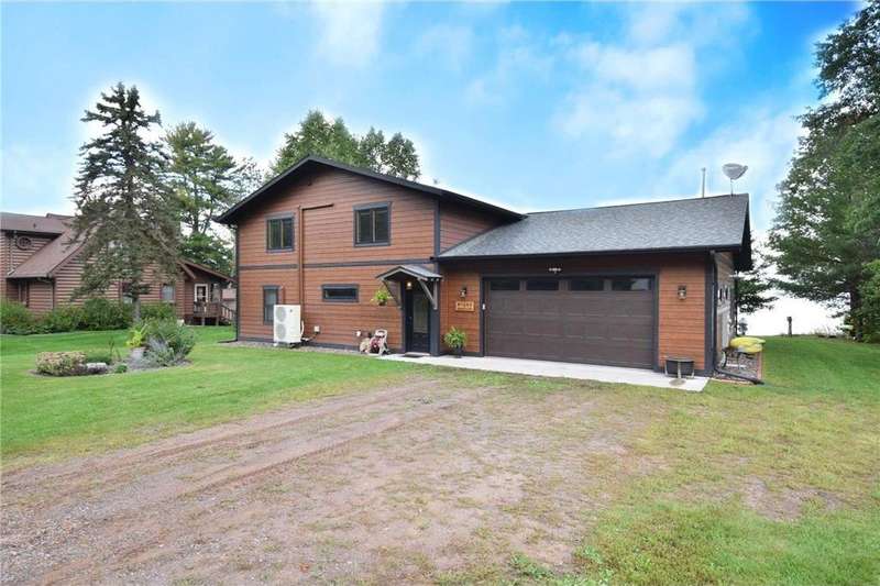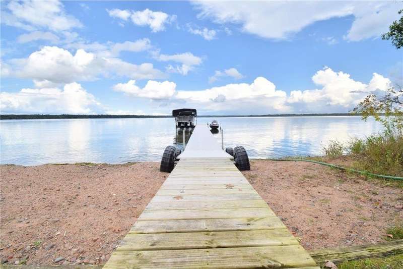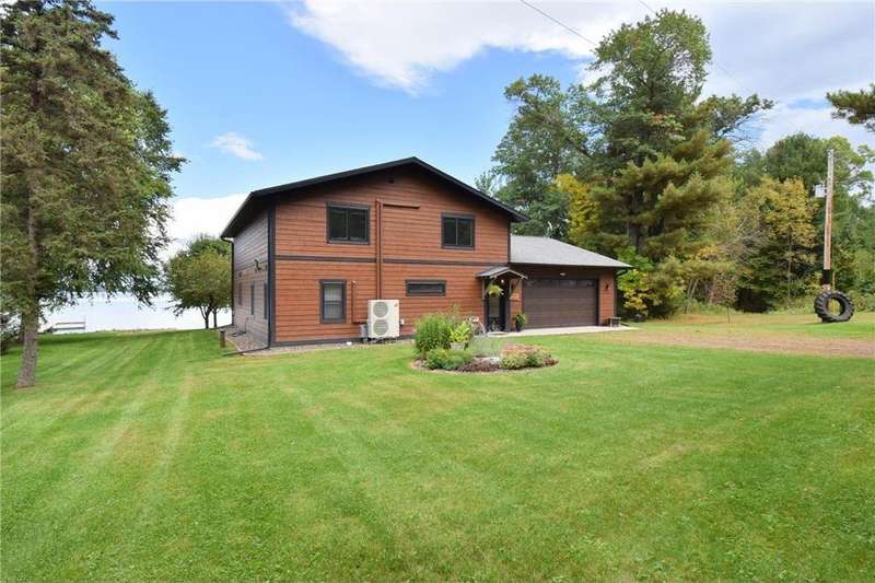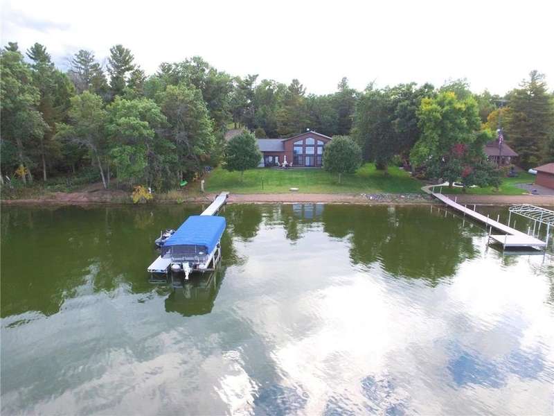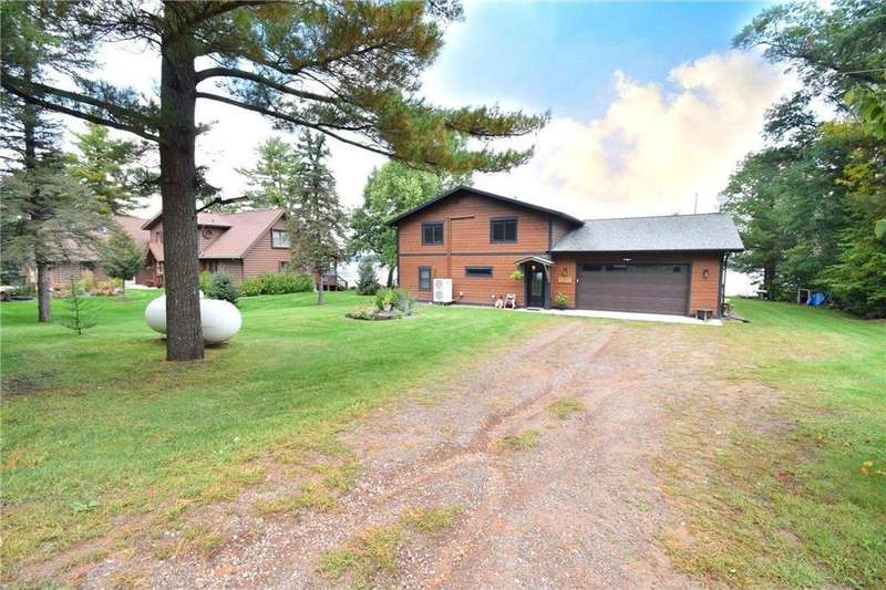 Spectacular custom high-end 3 BR, 3 BA chalet built by local reputable builder on Big Yellow Lake—sold turn-key! 97’ of level shoreline, sand beach, lakeside patio & gorgeous lawn. Soaring pine ceilings, artfully stained concrete floors, & great room w/wall of glass overlooking the lake. The fabulous eat-in kitchen features a massive live-edge pine island, knotty alder cabinets, stylish lighting, and flows to the lakeside four-season porch. Large main floor master suite featuring a custom bath w/ black cabinetry, brushed gold hardware, granite countertops, & tiled walk-in shower w/pebble base. A striking staircase w/black handrails and accent lighting leads to the open loft w/office space, plus 2 spacious bedrooms & full bath. 2-car attached heated/insulated garage, LP Smart Siding, gutters, architectural shingles, irrigation, drilled well, conventional septic, in-floor hot water heat, on-demand water heater, & mini-splits for cooling. Appreciate the quiet road location bordered to the east by a township parcel that remains undeveloped. Enjoy boating 2,500+ acres of water with 2 bar/restaurants & endless UTV/snowmobile trails out the back door. This property is a true Northwoods retreat!
