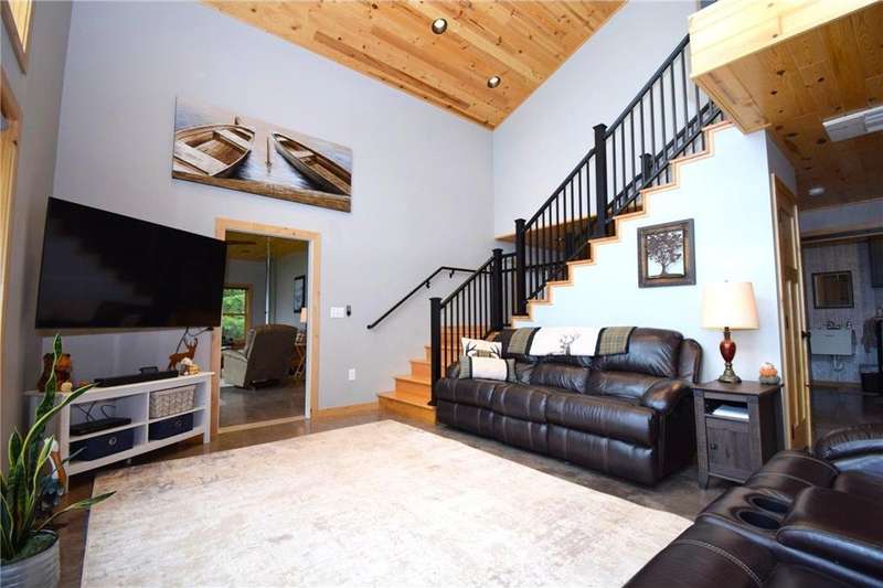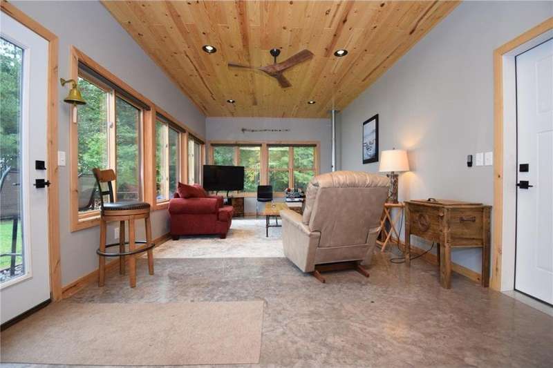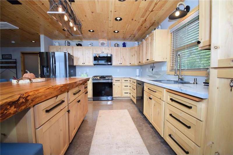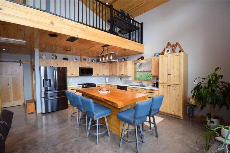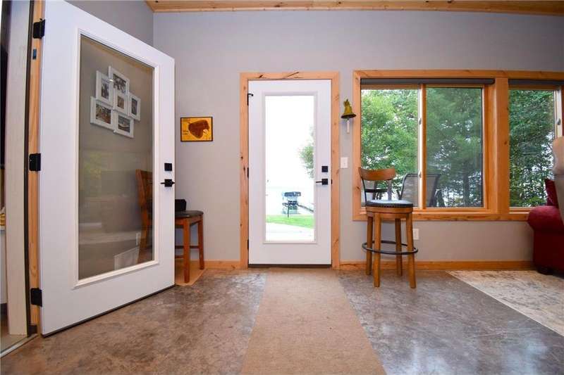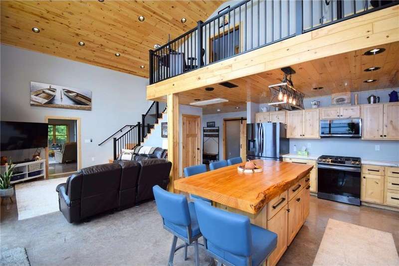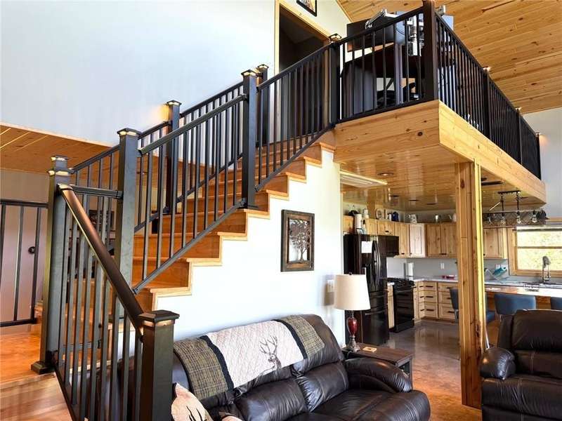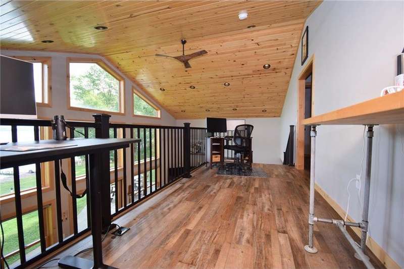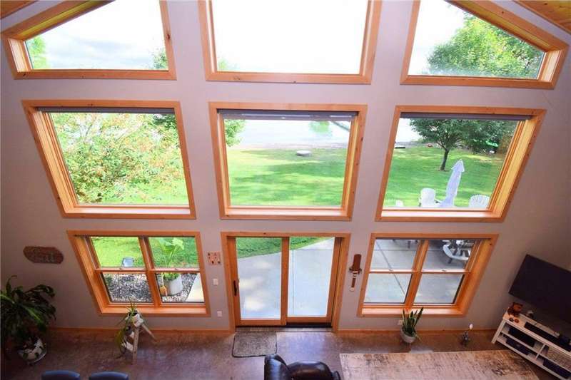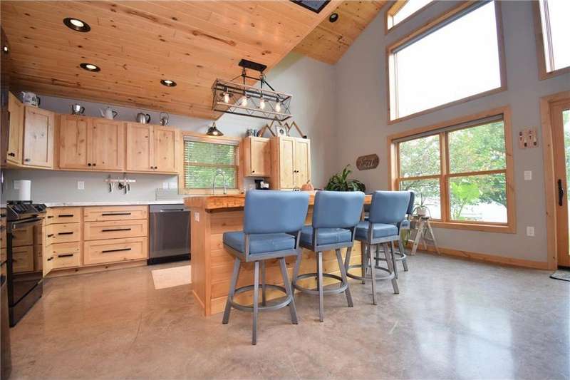 Spectacular custom high-end 3 BR, 3 BA chalet built by local reputable builder on Big Yellow Lake—sold turn-key! 97’ of level shoreline, sand beach, lakeside patio & gorgeous lawn. Soaring pine ceilings, artfully stained concrete floors, & great room w/wall of glass overlooking the lake. The fabulous eat-in kitchen features a massive live-edge pine island, knotty alder cabinets, stylish lighting, and flows to the lakeside four-season porch. Large main floor master suite featuring a custom bath w/ black cabinetry, brushed gold hardware, granite countertops, & tiled walk-in shower w/pebble base. A striking staircase w/black handrails and accent lighting leads to the open loft w/office space, plus 2 spacious bedrooms & full bath. 2-car attached heated/insulated garage, LP Smart Siding, gutters, architectural shingles, irrigation, drilled well, conventional septic, in-floor hot water heat, on-demand water heater, & mini-splits for cooling. Appreciate the quiet road location bordered to the east by a township parcel that remains undeveloped. Enjoy boating 2,500+ acres of water with 2 bar/restaurants & endless UTV/snowmobile trails out the back door. This property is a true Northwoods retreat!